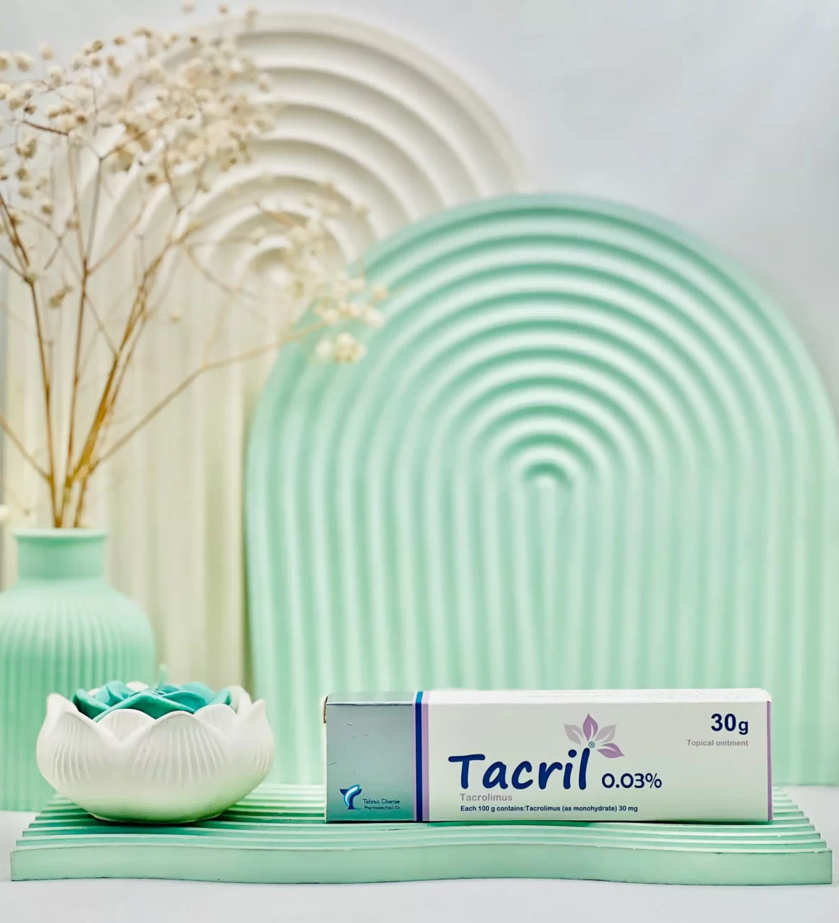 - مناسب پوستهای حساس: تاکریل موضعی در دو غلظت 0.03 درصد و 0.1 درصد موجود است. غلظت کمتر آن یعنی تاکریل 0.03 درصد برای افراد با پوستهای حساس مناسبتر است. همچنین به عنوان یک درمان کوتاه مدت یا در مواقع تشدید علائم توصیه میشود.