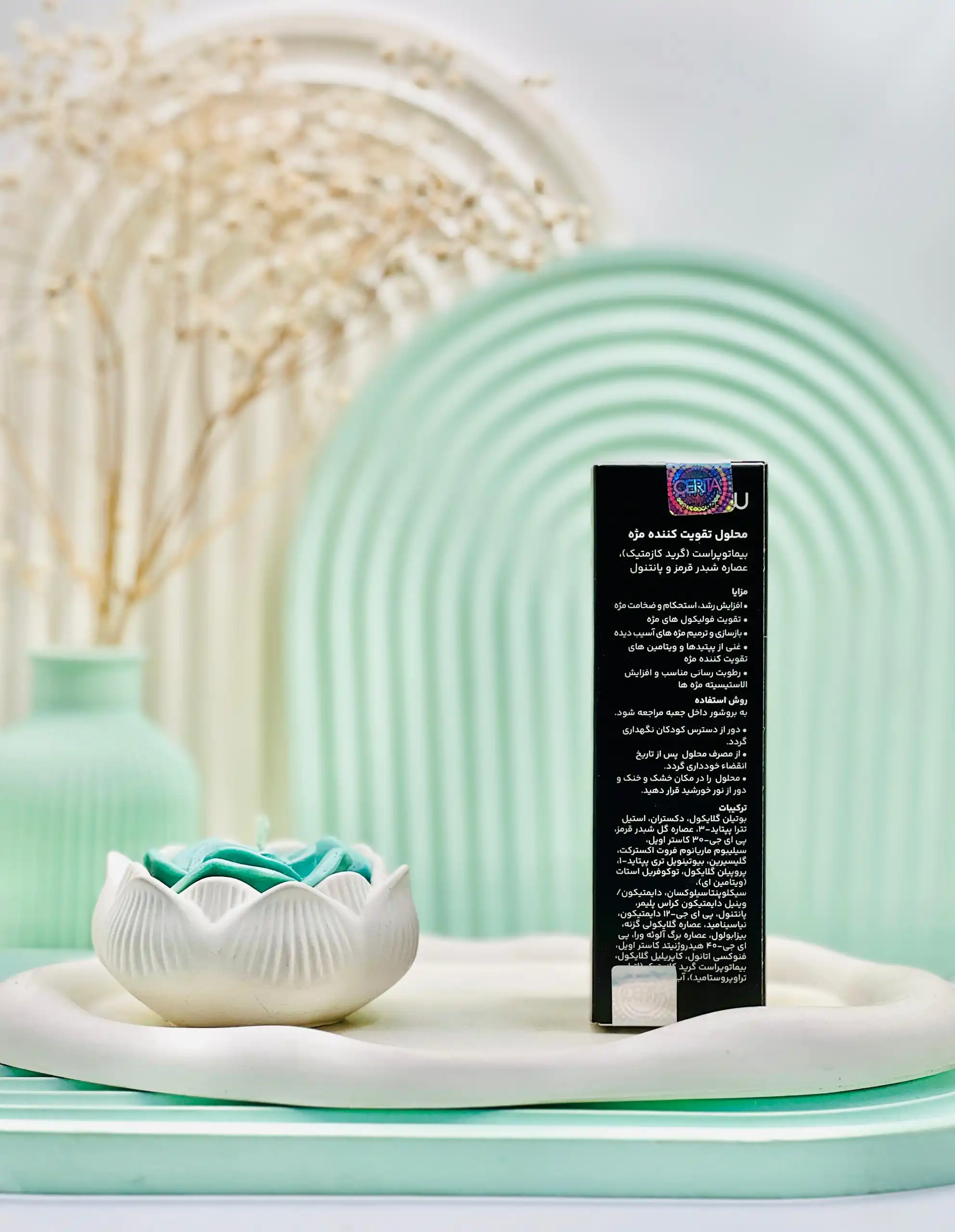 - غنی از پپتیدها و ویتامینهای تقویت کننده مژه