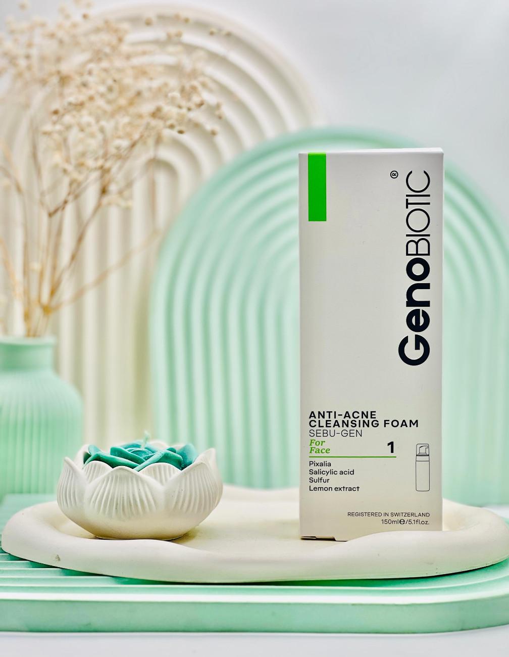 فوم شستشوی صورت ضد آکنه ژنوبایوتیک محصولی جهت شستشوی پوست های چرب و دارای جوش می باشد. این محصول، علاوه بر شستشوی پوست از آلودگی و چربی، درمان کننده جوش و آکنه و رفع التهاب و قرمزی پوست را بر عهده دارد. شوینده هایی که فوم و به شکل کف هستند قابلیت شستشوی بالا و بافتی سبک دارند. این نوع شوینده ها دقیقا داخل منافذ باز پوست را شستشو داده و صورت را از هر آلودگی پاک می نماید اما شوینده های مایع و ژلی قابلیت پاک کنندگی کمتری نسبت به فوم ها دارند.