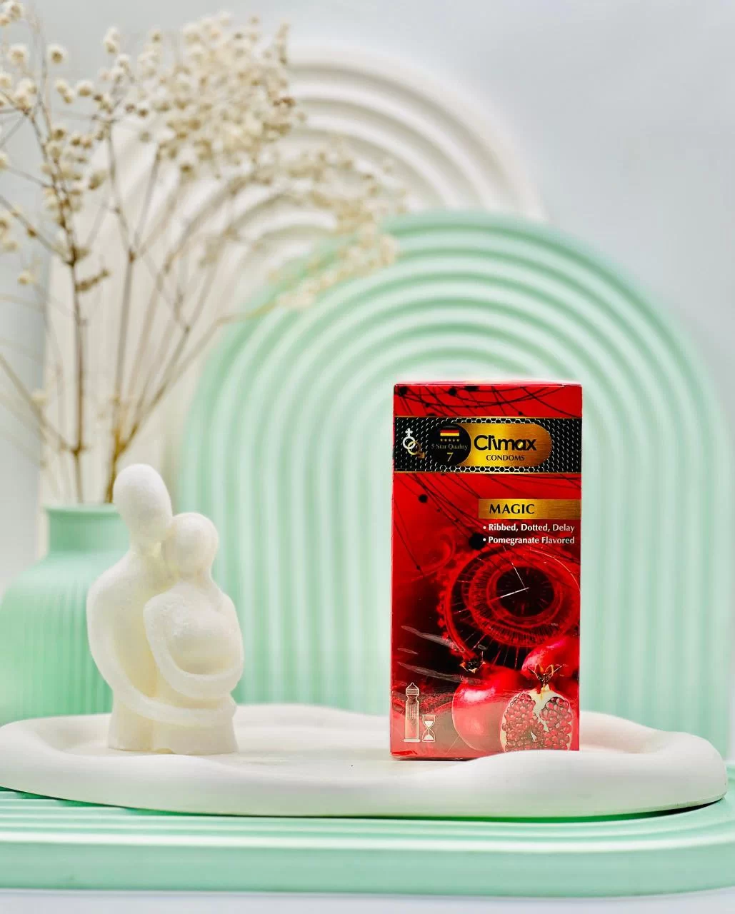 کاندوم تاخیری خاردار و شیاردار انار کلایمکس 12 عددی