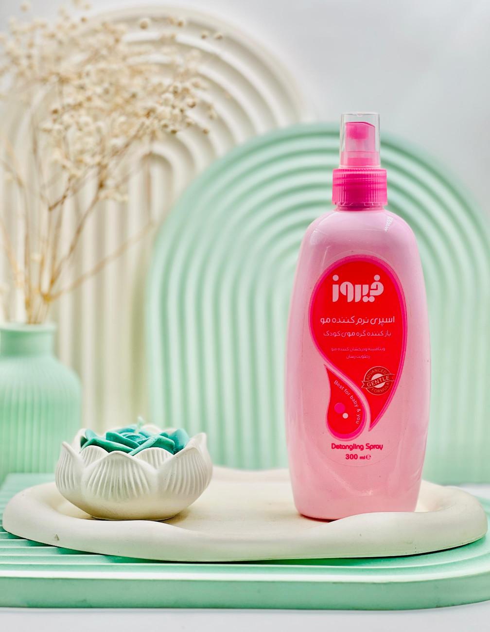 ویژگی های اسپری نرم کننده و درخشان کننده موی کودک فیروز :