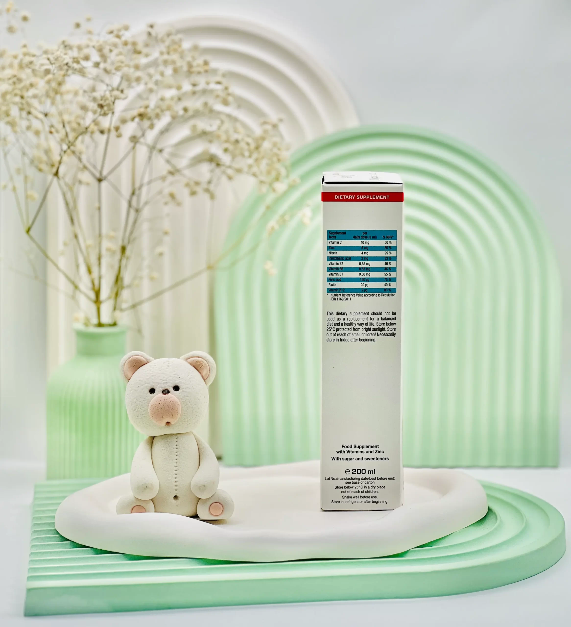 خواص و اثرات ترکیبات – زینک: رشد کودکان، تقویت سیستم ایمنی، سلامت پوست و مو– ویتامین C: آنتی‌اکسیدان، جذب بهتر زینک، تقویت ایمنی– ویتامین‌های گروه B: افزایش انرژی، تقویت سیستم عصبی، کمک به متابولیسم– فولیک اسید: ساخت گلبول‌های قرمز، سلامت عمومی– بیوتین: تقویت مو، پوست و ناخن