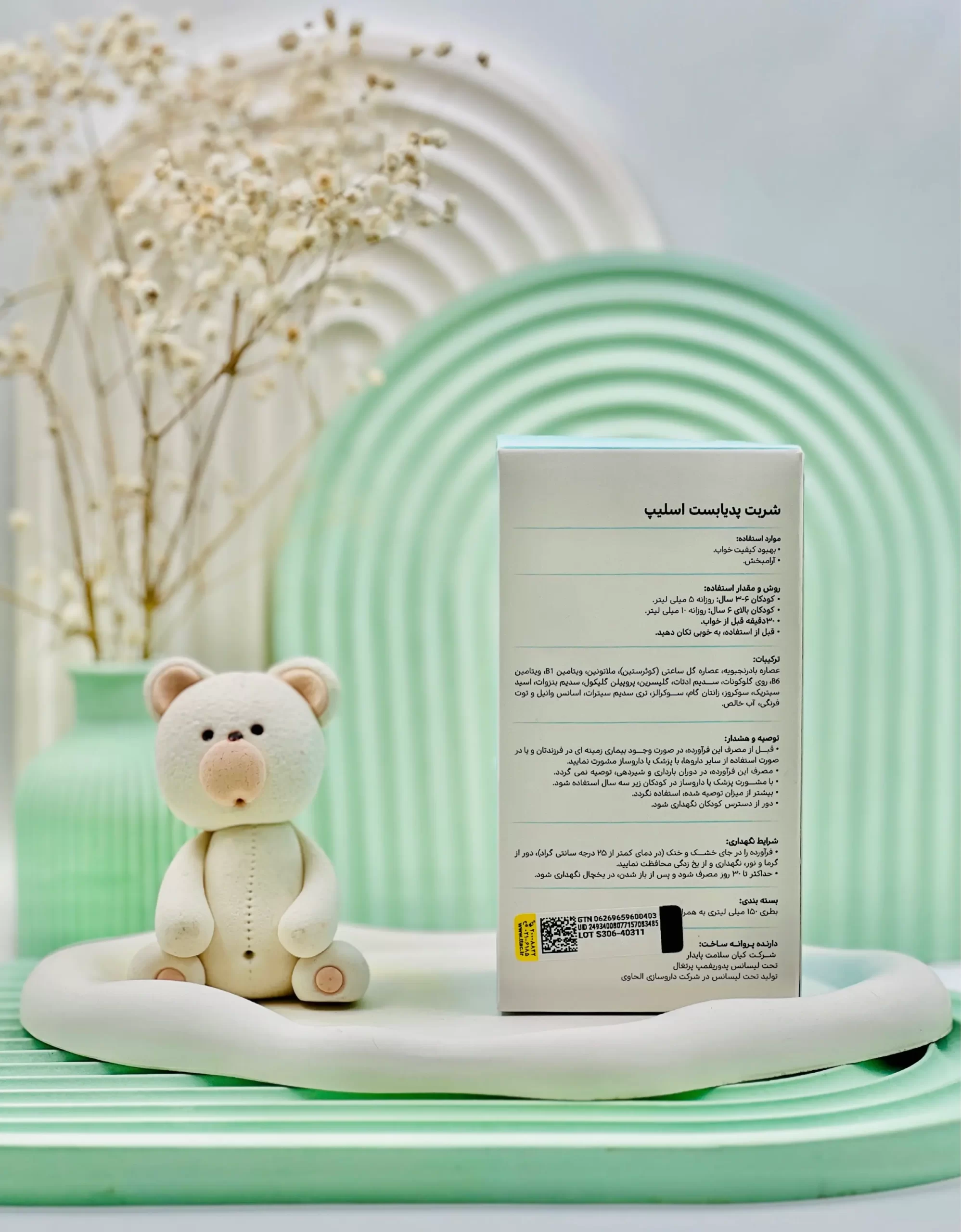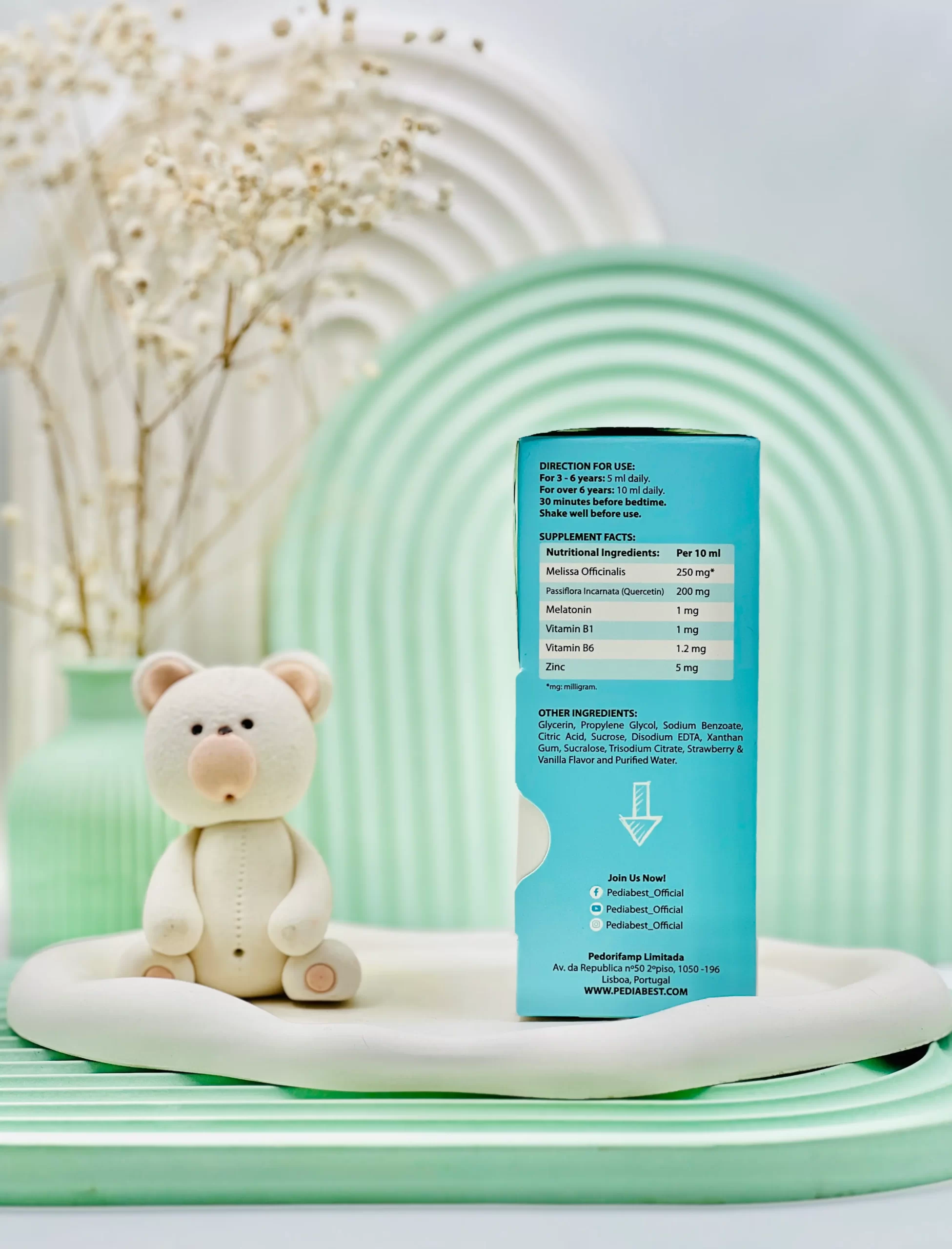 - شربت اسلیپ پدیابست حاوی ترکیبات گیاهی همچون سنبل الطیب و گل ساعتی است. این شربت برای کودکانی که مشکل خواب دارند و یا در محیطهای جدید دچار استرس و بیخوابی میشوند، ایدهآل است.
