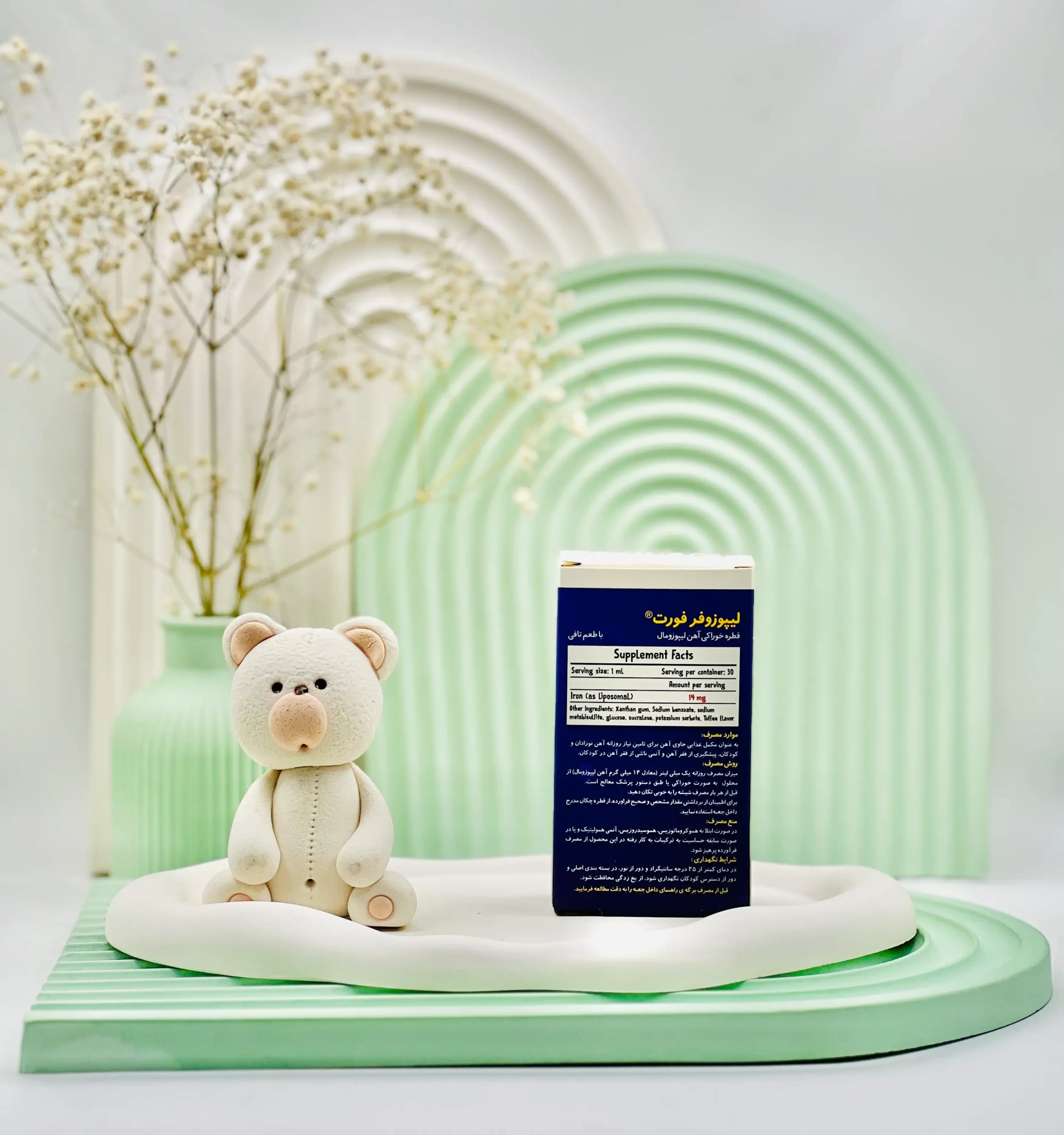 | مقدار آهن در هر میلیلیتر | حاوی 14 میلیگرم آهن لیپوزومال در هر 1 میلیلیتر |