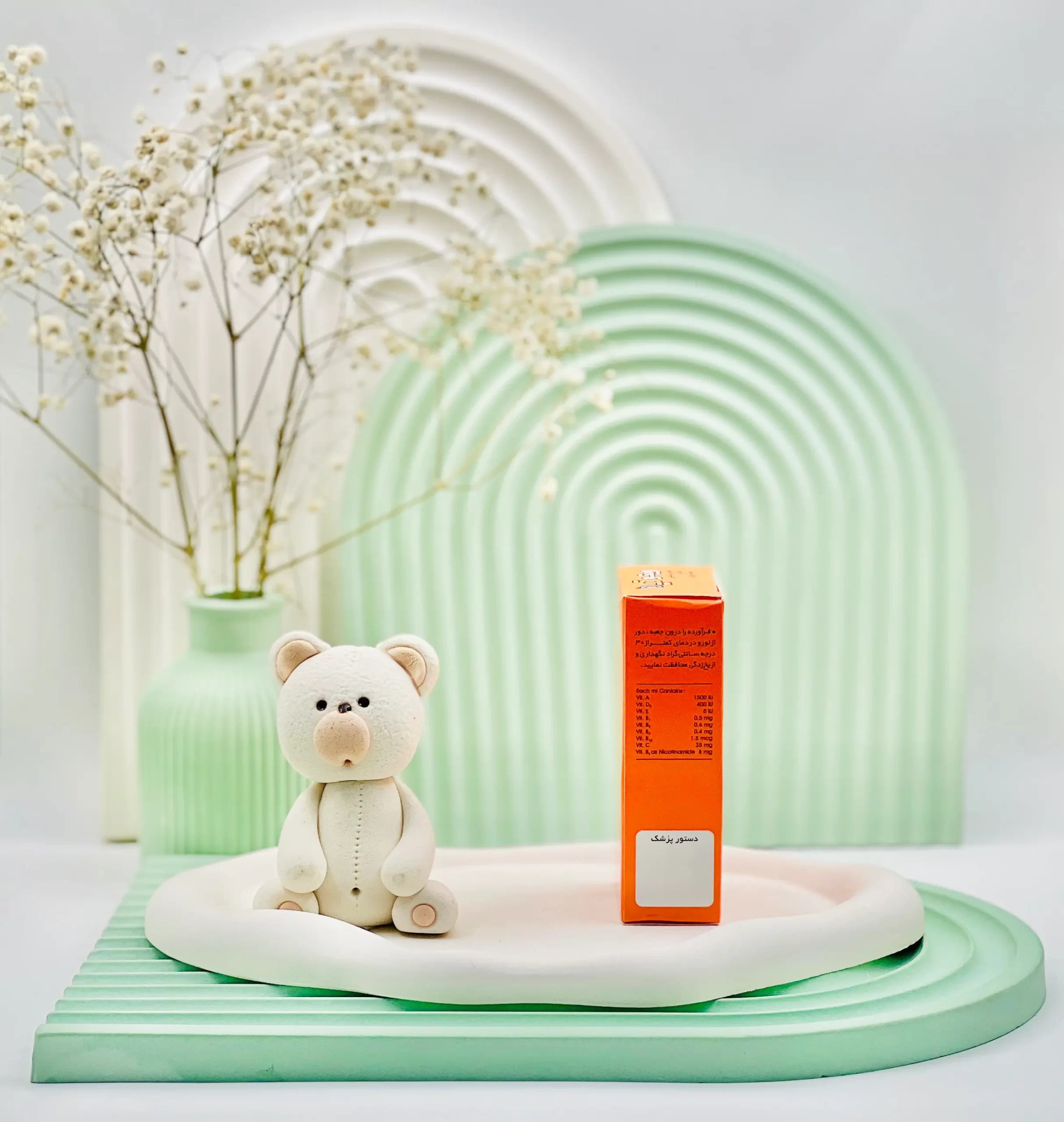 | ویتامینها و مواد معدنی موجود | ویتامینهای گروه B (B1، B2، B6، B12 و نیکوتینامید) برای تقویت سیستم عصبی و افزایش انرژی، ویتامین A برای رشد و بینایی، ویتامین C برای تقویت سیستم ایمنی و سلامت لثه و دندان، ویتامین D3 برای رشد استخوانها و جلوگیری از راشیتیسم، ویتامین E برای تکامل سیستم عصبی و محافظت سلولی. |