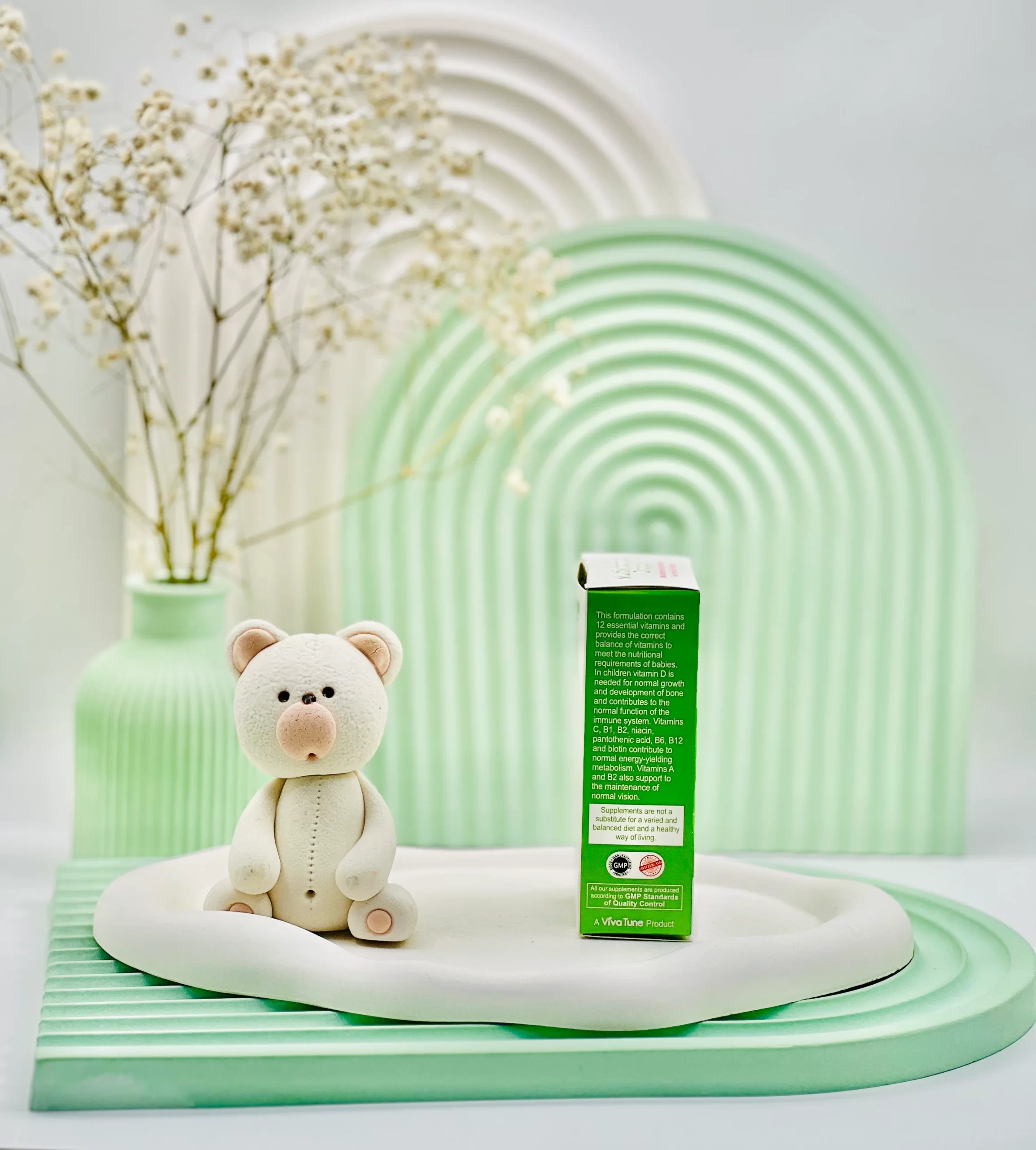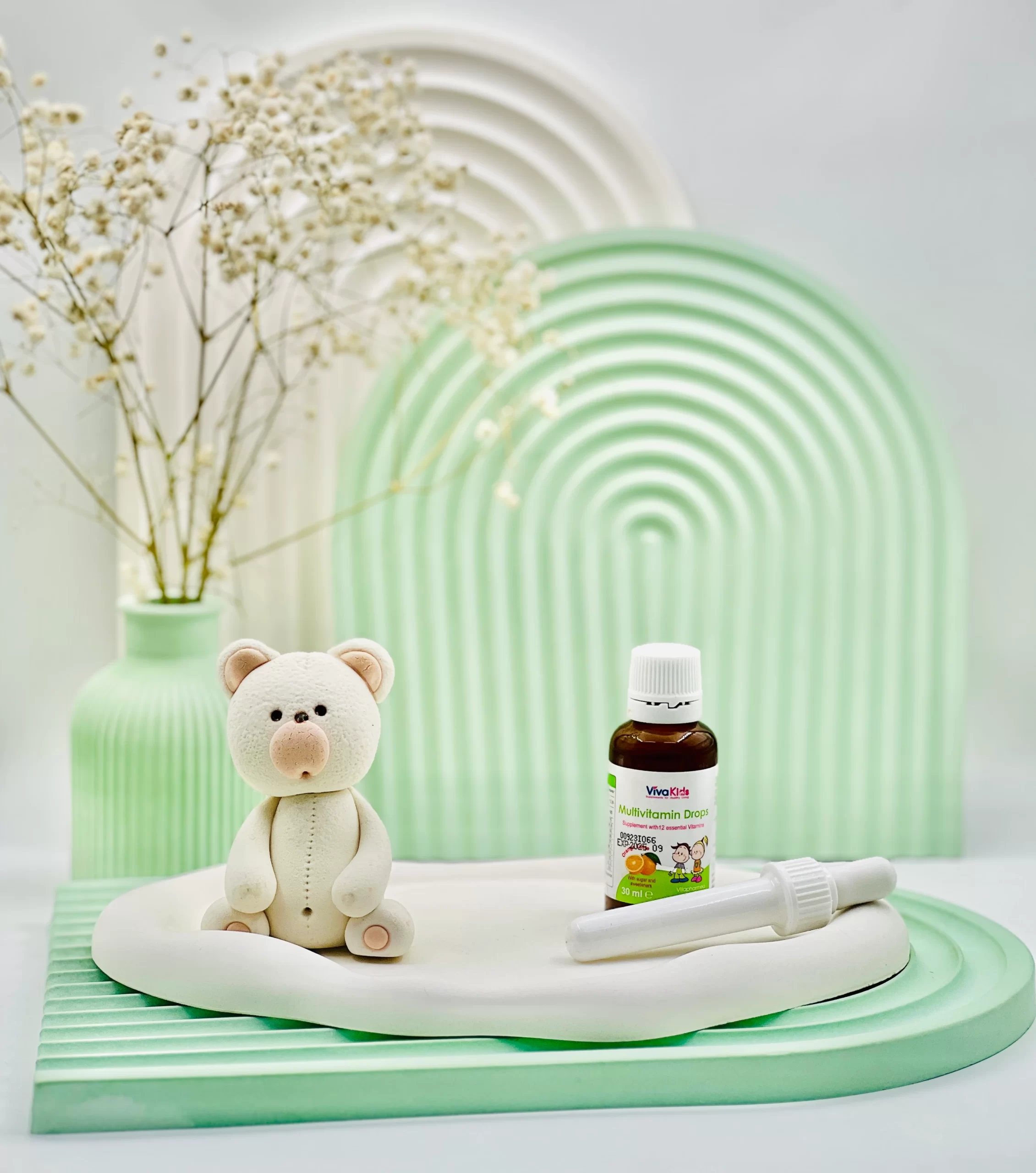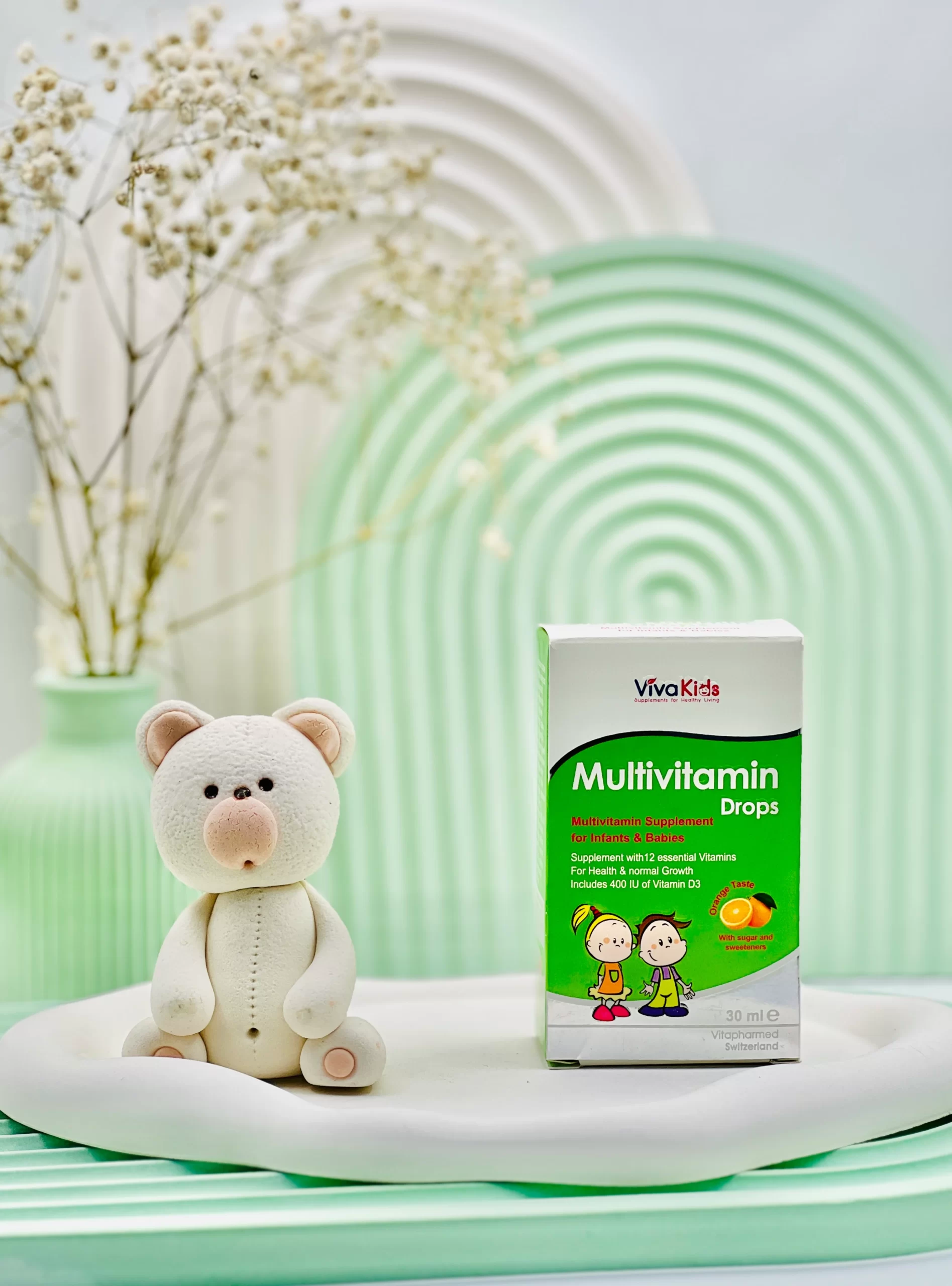 این قطره مولتی ویتامین حاوی 12 ویتامین ضروریمی باشد که سبب رشد و تقویت کودکان می شود، طعم پرتقال آن سبب پذیرش آسان تر برای کودکان شده. قطره مولتی ویتامین ویواکیدز تحت لیسانس سوئیس می باشد.