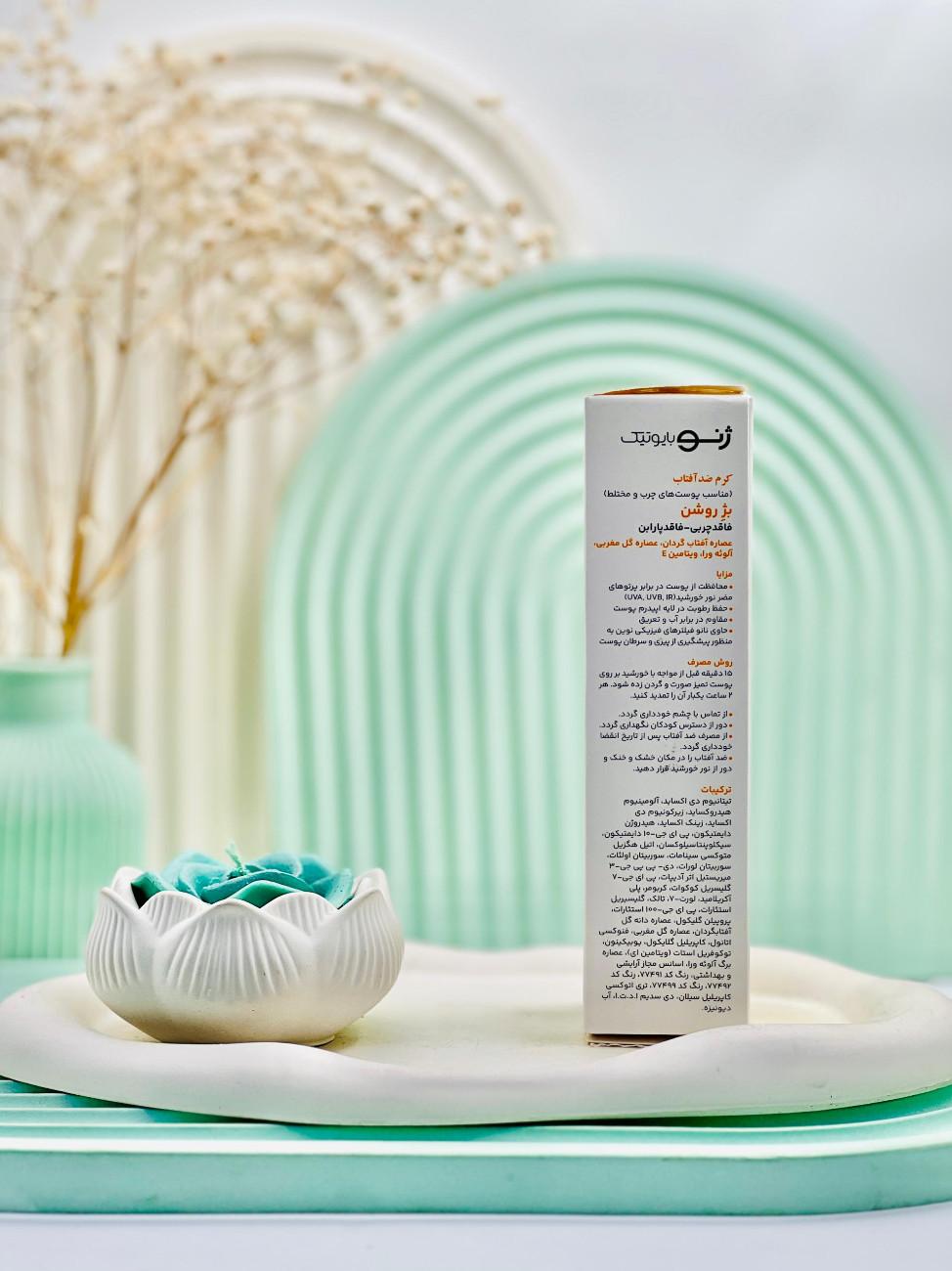 کرم ضد آفتاب SPF50 پوست مختلط و چرب ژنوبایوتیک رنگ بژ طبیعی 50 میلی لیتر