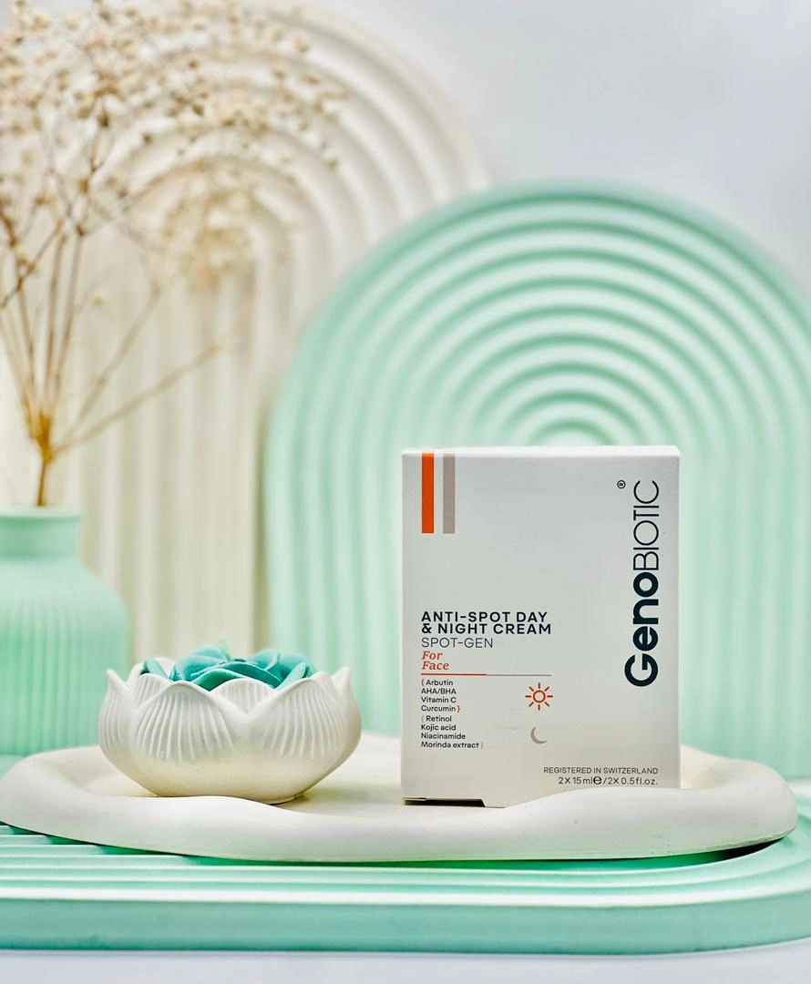 کرم ضد لک روز و شب ژنوبایوتیک محصولی انحصاری از شرکت ژنوبایوتیک است که شامل یک کرم روز 15 میلی لیتر و یک کرم شب 15 میلی لیتر ضد لک میباشد. این خرید کرم ضد لک حاوی رتینول، AHA و BHA بوده و به کاهش سریع آثار لک کمک میکند. همچنین با بهرهگیری از کوجیک اسید رنگ پوست را یکنواخت میکند. کرم ضد لک روز و شب اسپات ژن به منظور کاهش لکههای پوستی، روشنسازی تناژ پوست و درمان لکهای صورت ناشی از آفتاب، افزایش سن، التهاب و جای جوش تولید شده است. این کرم با برخورداری از آلفا هیدروکسی اسیدها و بتا هیدروکسی اسیدها به لایهبرداری سطح پوست پرداخته و با کمک ویتامین سی و کورکومین موجود در گیاه زردچوبه به کاهش آثار لکههای پوستی و روشنسازی آن میپردازد. از آنجایی هم که دارای آربوتین است، التهابات پوستی را کنترل کرده و از واکنشهای آلرژیک در زمان اثربخشی جلوگیری میکند.