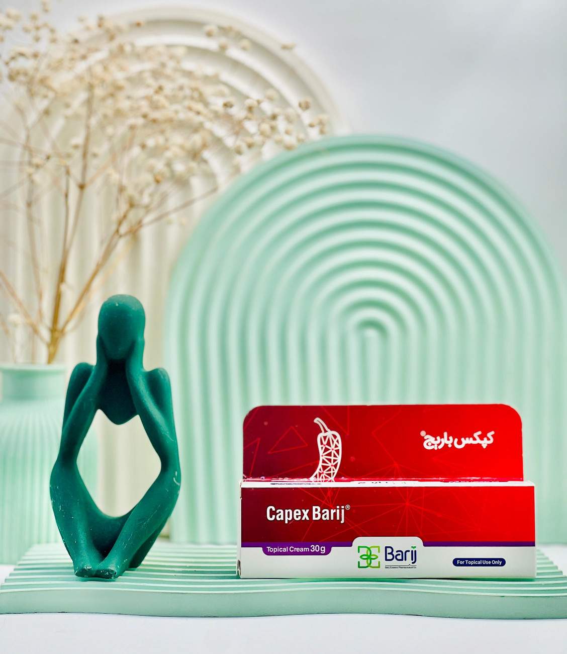کرم کپکس باریج اسانس از کرمهای درمانی کاملا طبیعی و ارگانیک، حاوی عصاره فلفل قرمز و روغن سیاهدانه است. این محصول از خواص ضد درد و ضد التهابی برخوردار بوده و جهت درمان موضعی دردهای عصبی بعد از زونا، تسکین درد در نوروپاتی دیابتی و رفع درد و گرفتگی عضلات نواحی مختلف همچون شانه، بازو، پا و ستون فقرات تولید شده است. این کرم با از کار انداختن فیبرهای عصبی، میزان درد را کاهش میدهد. کپکس باریج اسانس محصولی کارآمد در کاهش و مدیریت عارضه آرتریت روماتوئید نیز محسوب میشود.