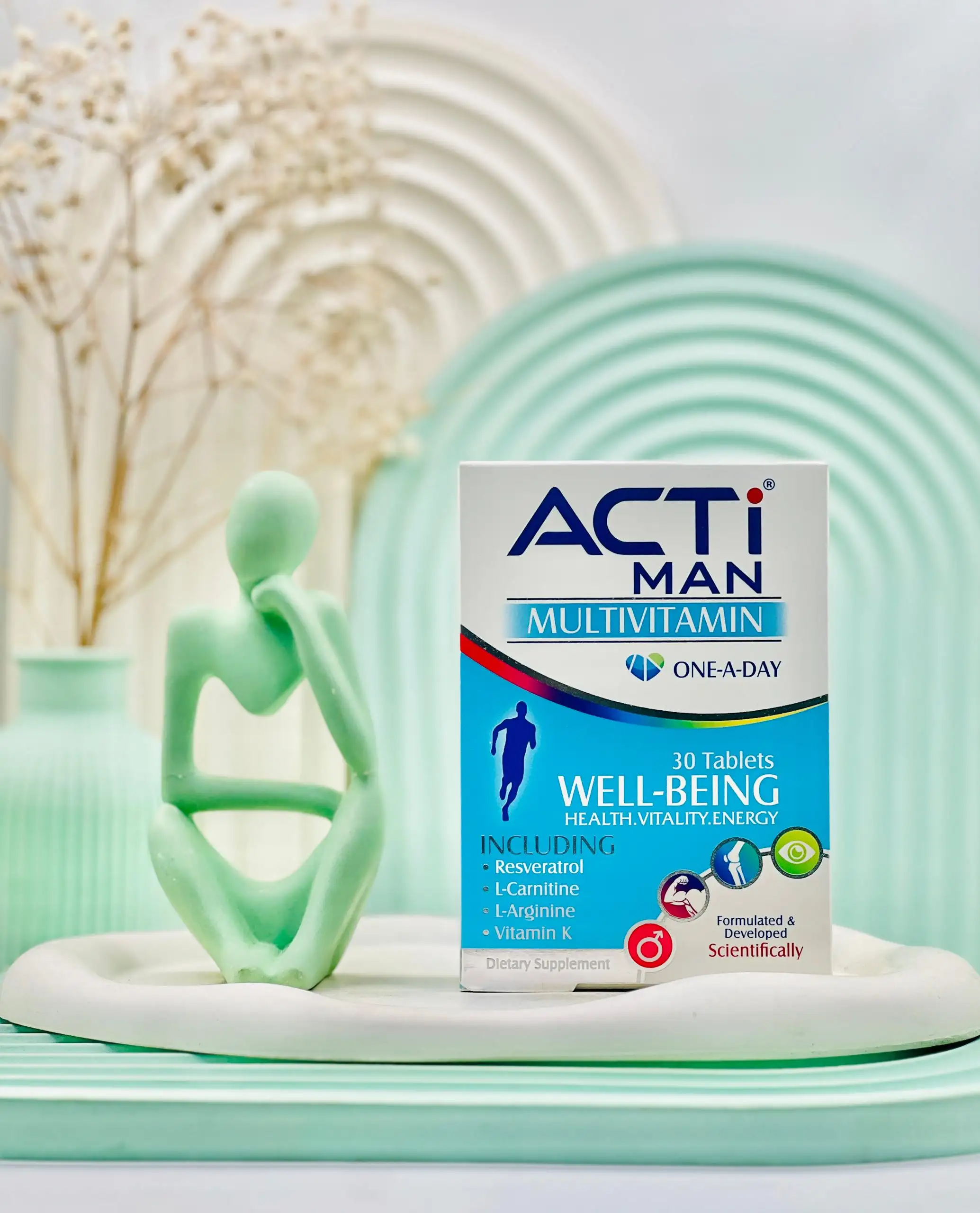 قرص اکتی من، یک مولتی ویتامین تخصصی است که حاوی ویتامین ها، مواد معدنی و مواد مغذی همانند جینسینگ، لیکوپن، کیوتن، پابا، کارنتین، آرژنین، رزوراترول، تائورین و … است. این مکمل با بهره گیری از ترکیبات خود به کاهش خستگی، ارتقای سلامت عمومی و تقویت قوای جسمی کمک میکند و باید بدانید که به طور تخصصی برای آقایان طراحی شده و توسط شرکت ابیان دارو تولید شده است.