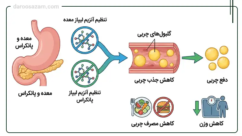 | اثر بر چربی | کاهش جذب چربی غذایی و کالری دریافتی |
