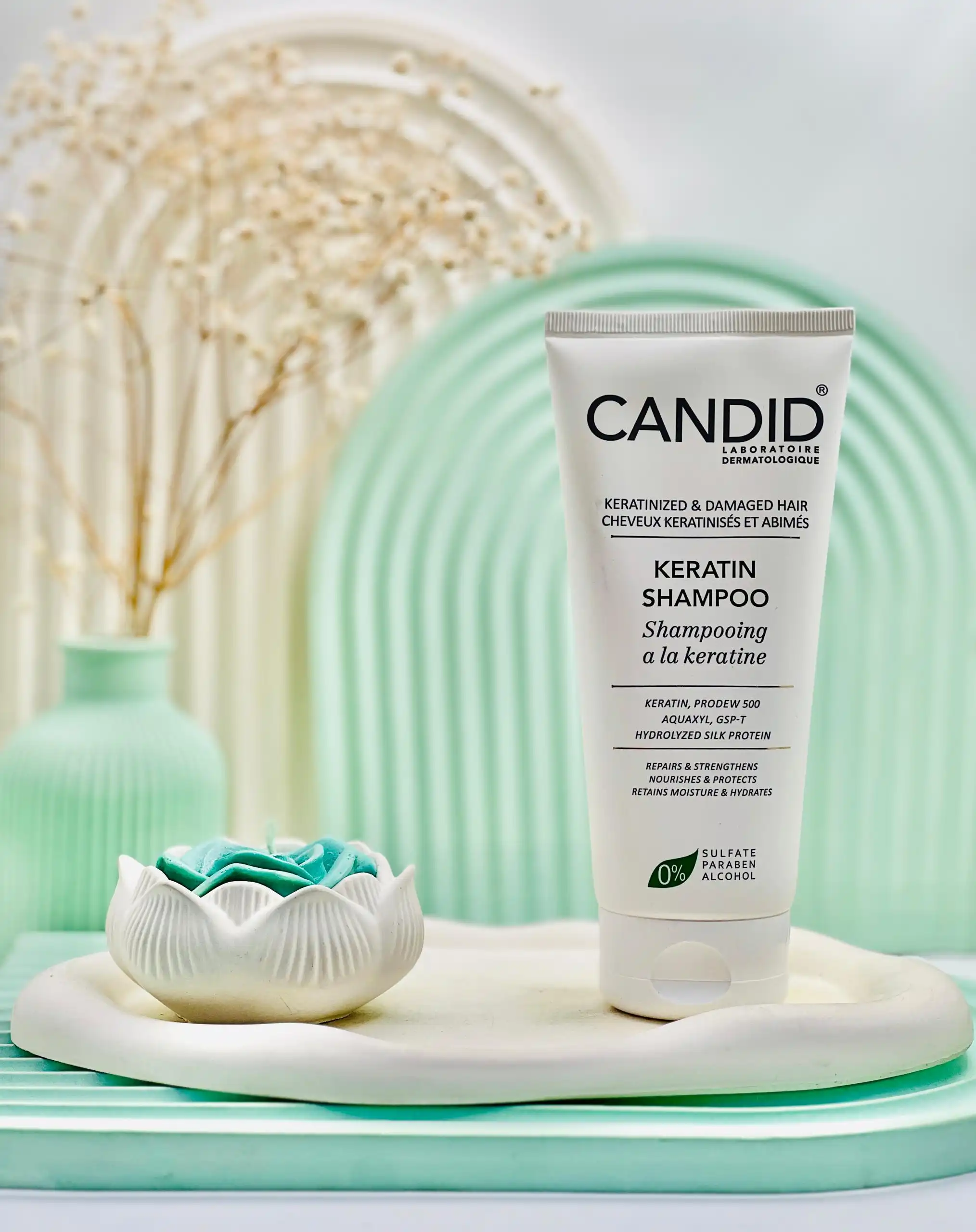 شامپو کراتینه کاندید دارای ترکیبات فوق العاده و موثر می باشد که از موجب حفظ سلامت موف آبرسانی قوی و حفظ زیبایی مو می شود که در ادامه خواص و ترکیبات مفید این محصول را برای شما عزیزان آورده ایم: