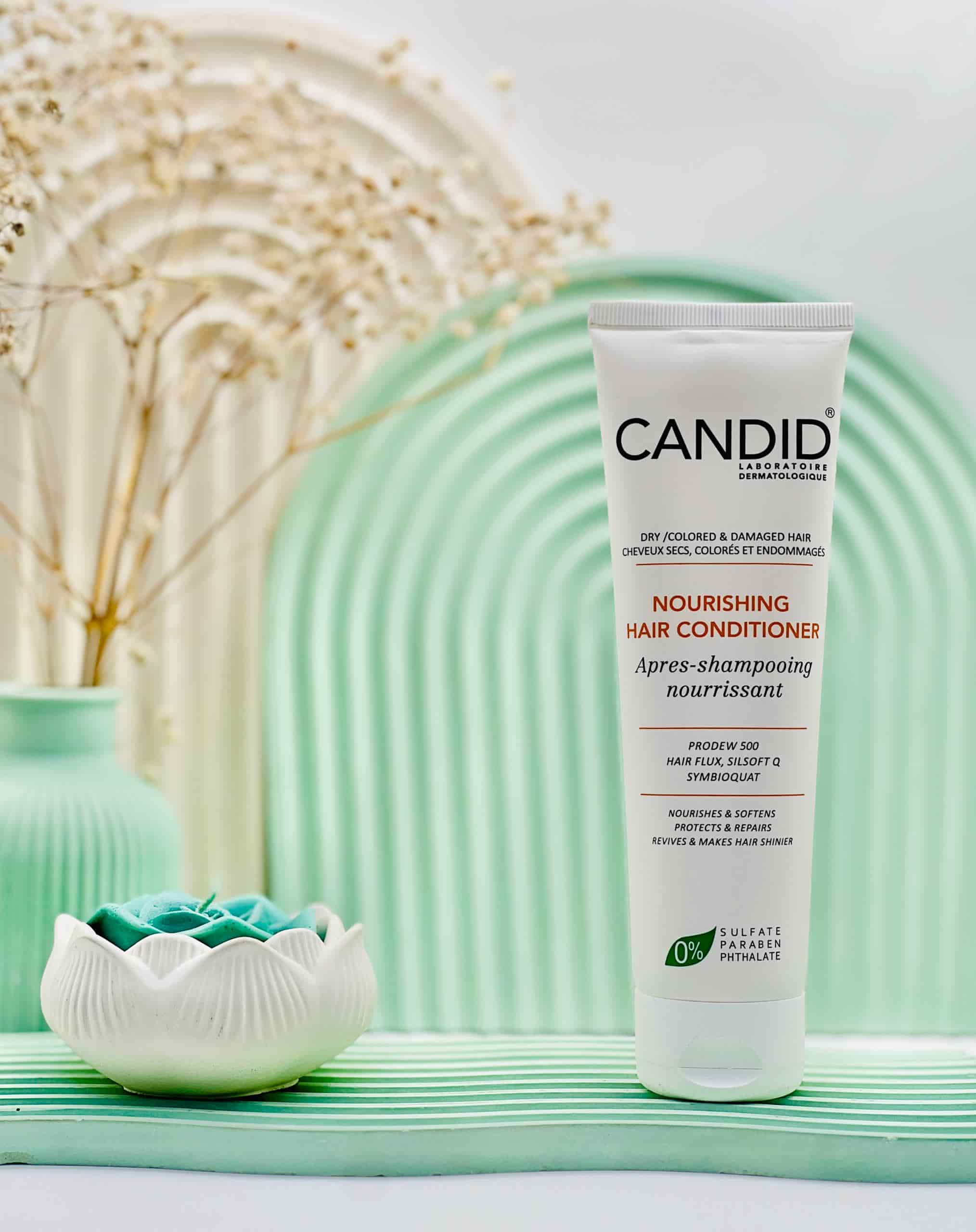 نرم کننده مغذی کاندید یکی از محصولات مراقبت مو از برند کاندید بوده که مناسب برای موهای رنگ شده، آسیب دیده و خشک است. این نرم کننده فرمولاسیونی خاص برای زیبایی و سلامت مو دارد و با ترکیبات مغذی، تقویت کننده و مرطوب کننده همانند اسیدهای آمینه و پروتئین های هیدرولیز شده، رطوبت مو را تامین کرده و ساختار مو را ترميم میکند. این محصول از مو در برابر آسیب های محیطی، آلودگی، تغییرات آب و هوایی و آفتاب محافظت میکند.