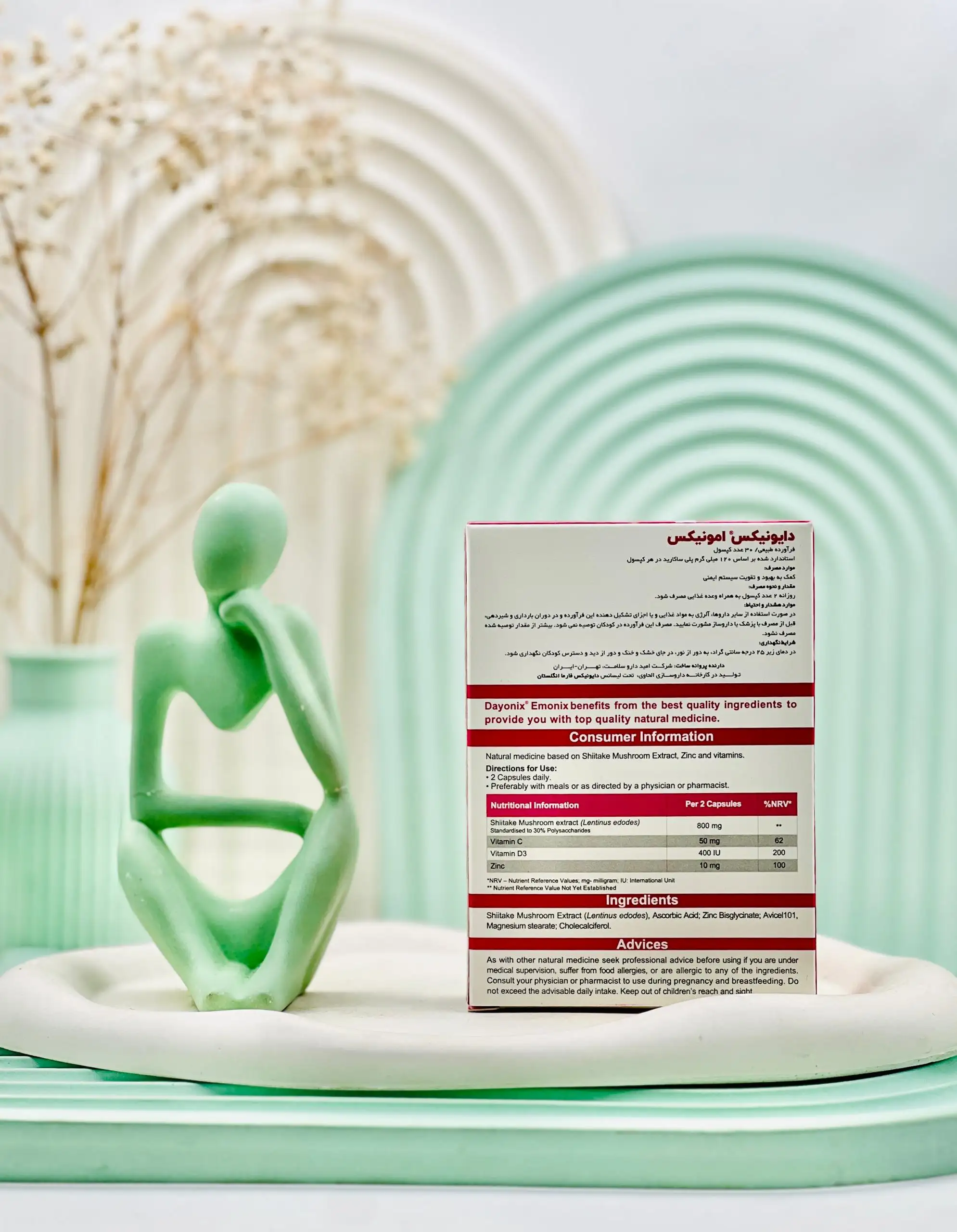 - حاوی ویتامین C، ویتامین D، زینک و قارچ شیتاکه