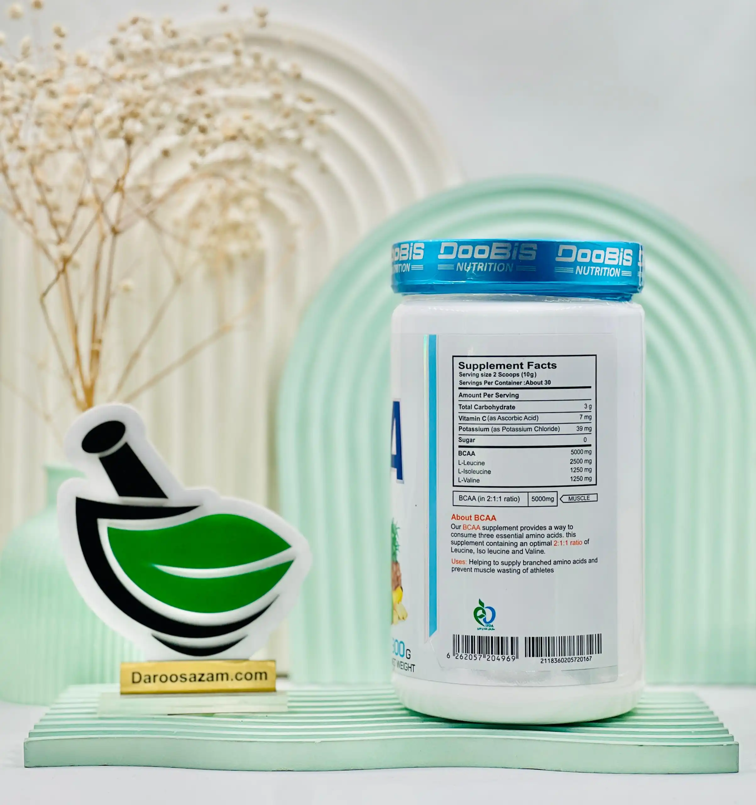 پودر بی سی ای ای ۵۰۰۰ دوبیس، یک مکمل عضله ساز و ضدکاتابولیک است که از ۳ آمینواسید ضروری و ۱ آمینواسید غیر ضروری تشکیل شده و دارای طعم بسیار خوبی است. در هر سروینگ این پودر ۱۵ درصد ویتامین C وجود داشته که با خاصیت آنتی اکسیدانی از تخریب و تحلیل عضلات جلوگیری کرده و از عضلات در برابر استرس های اکسیداتیو محافظت میکند. این مکمل علاوه بر بهبود عملکرد ورزشی باعث جلوگیری از آسیب عضلانی و کاهش خستگی پس از تمرینات سنگین شده و مناسب برای ورزشکاران حرفه ای است.