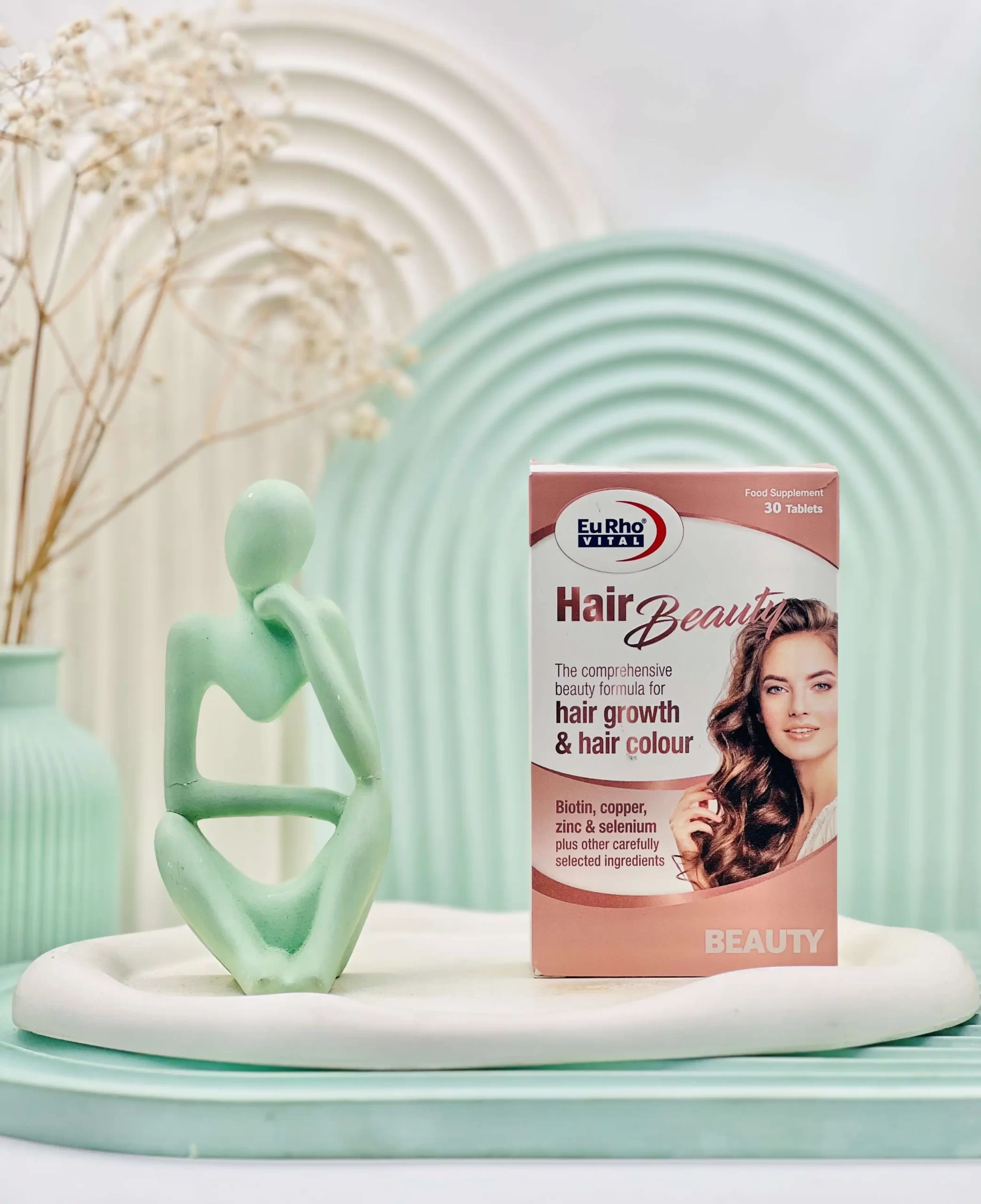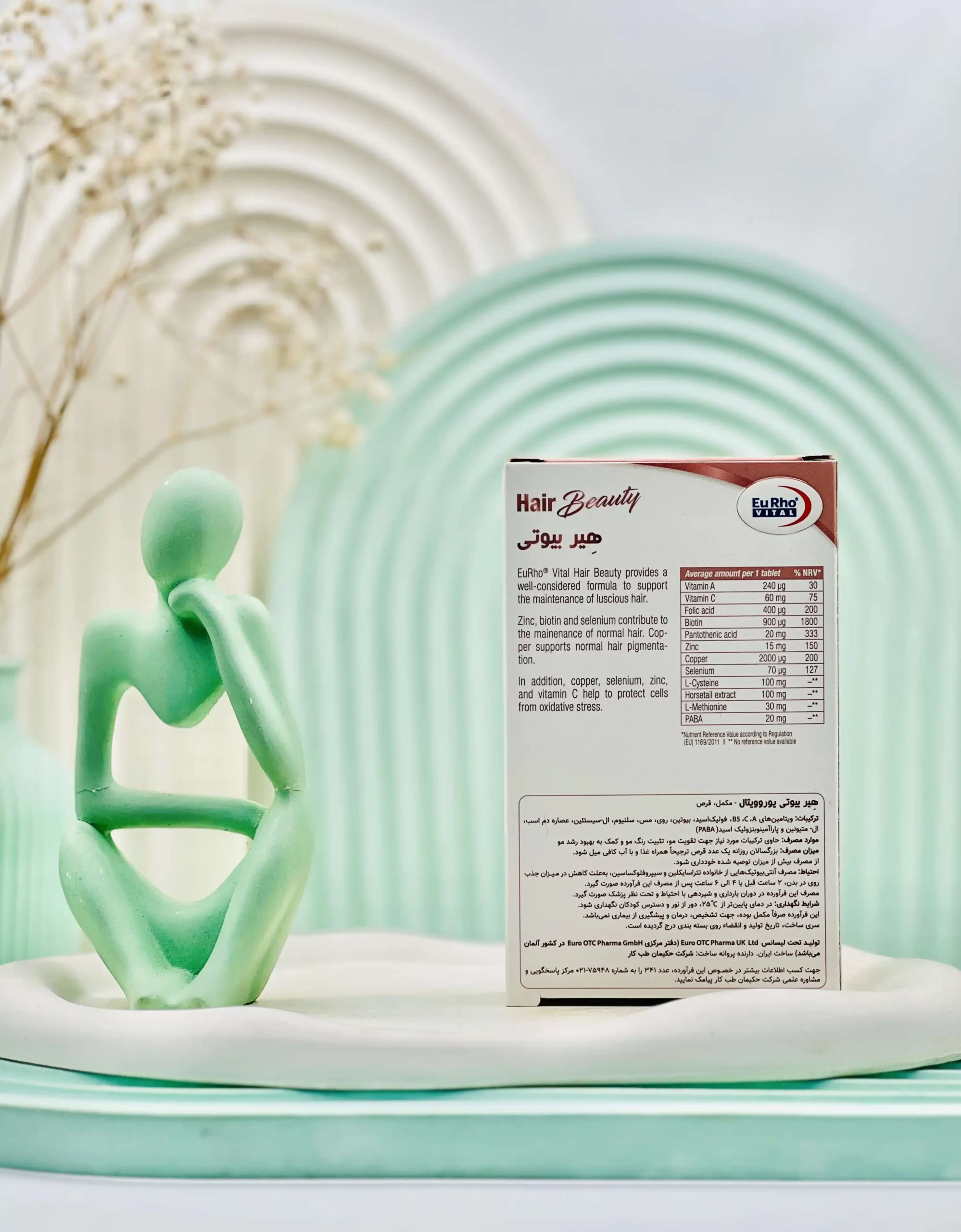 قرص هیر بیوتی یوروویتال، در واقع یک مکمل تغذیه ای و تخصصی است که در جهت جلوگیری از ریزش مو، تثبیت رنگ، رشد و تقویت مو و ناخن طراحی شده و تحت لیسانس شرکت آلمانی Euro OTC Pharma GmbH توسط شرکت حکیمان طب کار در ایران تولید شده است.