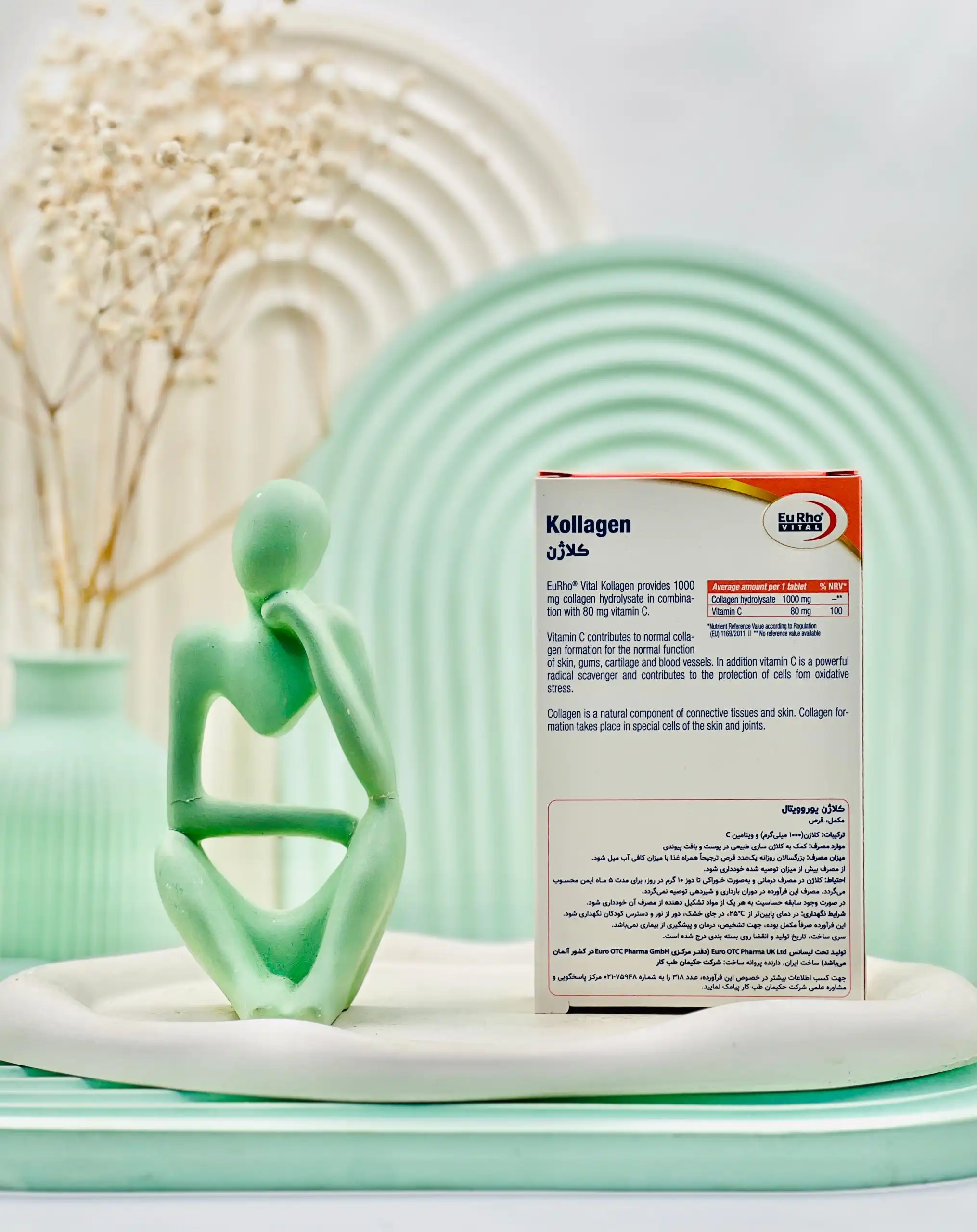 قرص کلاژن یوروویتال، در واقع یک مکمل غذایی است که حاوی ۱۰۰۰ میلی گرم کلاژن هیدرولیزات بوده که منشأ اصلی آن ماهی است. همانطور که میدانید کلاژن، یک پروتئین ساختاری ضروری برای استخوان ها، غضروفها و پوست مو است که کاربردی موثر در حفظ سلامت بافت های پیوندی و استحکام آن ها دارد. کلاژن به صورت طبیعی در بدن انسان ها تولید میشود، با این حال ممکن است با افزایش سن، آلودگی های محیطی، سیگار کشیدن و کمبود های تغذیه ای دیگر بدن توانایی ساخت کلاژن را نداشته باشد.