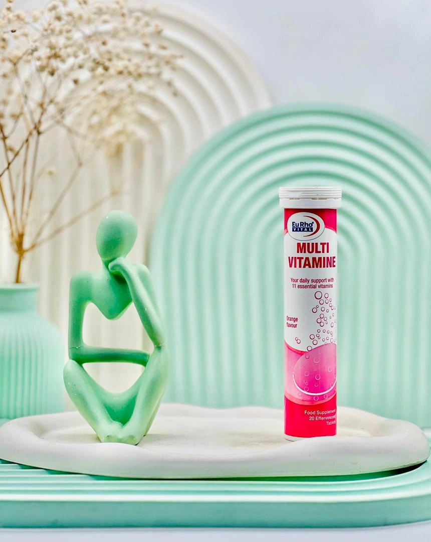 قرص جوشان مولتی ویتامین یوروویتال در واقع یک مکمل تغذیه ای است که حاوی ویتامین A، C، D، E ،K و ویتامین های گروه B است. این مکمل با تامین ریزمغذی های مورد نیاز روزانه بدن، میتواند کمبود های تغذیه ای را جبران کند و برای افرادی که محدودیت های تغذیه ای دارند بسیار مفید است. جوشان مولتی ویتامین با طعم پرتقالی به گونه ای طراحی شده که استفاده آن برای کودکان و بزرگسالانی که مشکل بلع دارند، بسیار راحت است و میتواند به کاهش احساس ضعف، افت انرژی و خستگی ناشی از کمبود ویتامین ها کمک کند.