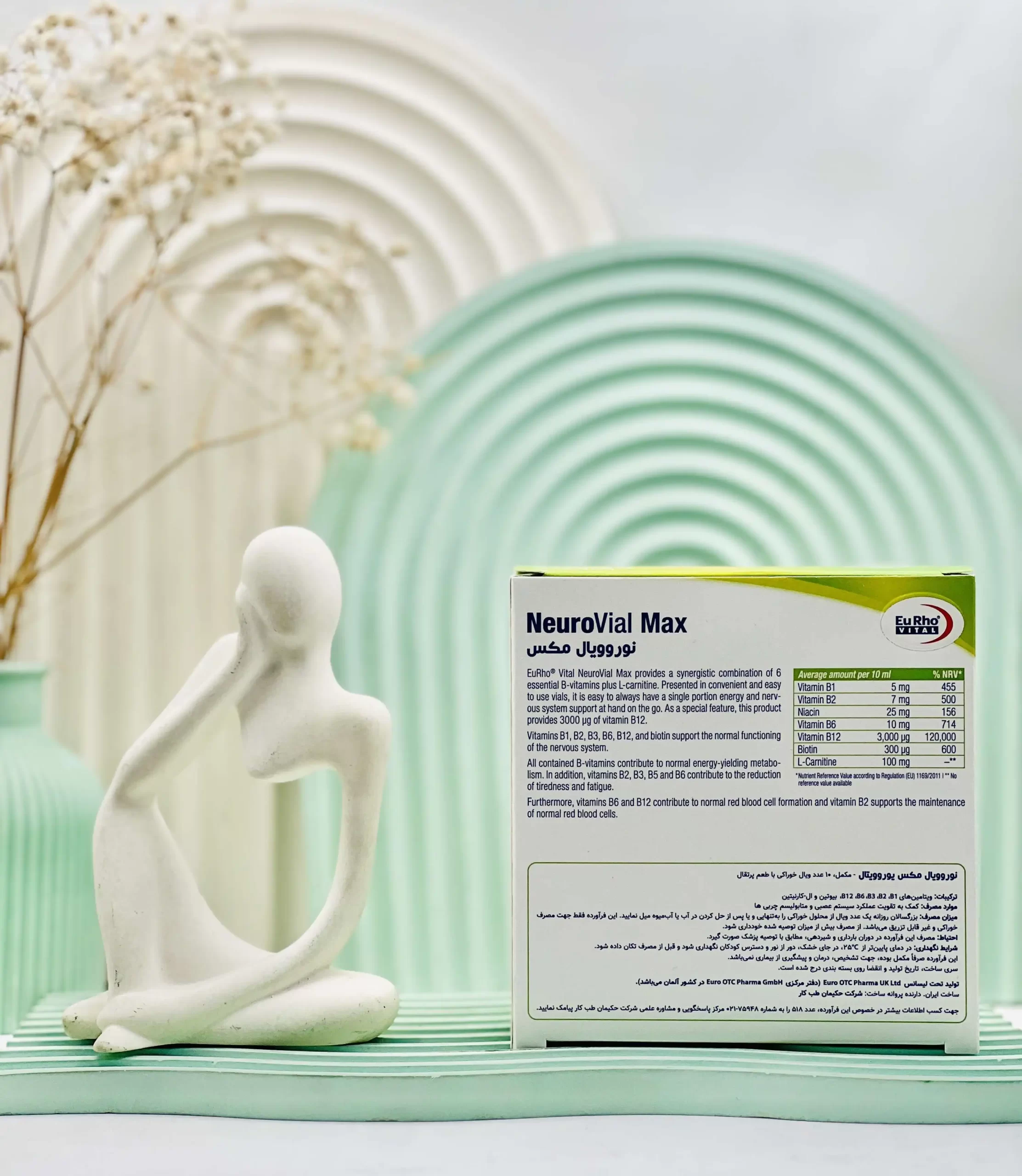ویال نوروویال مکس یوروویتال، یک فرآورده طبیعی حاوی دوز مناسبی از ویتامین ب۱۲، همراه با ال کارنیتین، ویتامین C و ویتامین ها گروه ب است که میتواند باعث افزایش سطح انرژی، بهبود عملکرد سیستم عصبی و حفظ سلامت پوست، مو میشود.
