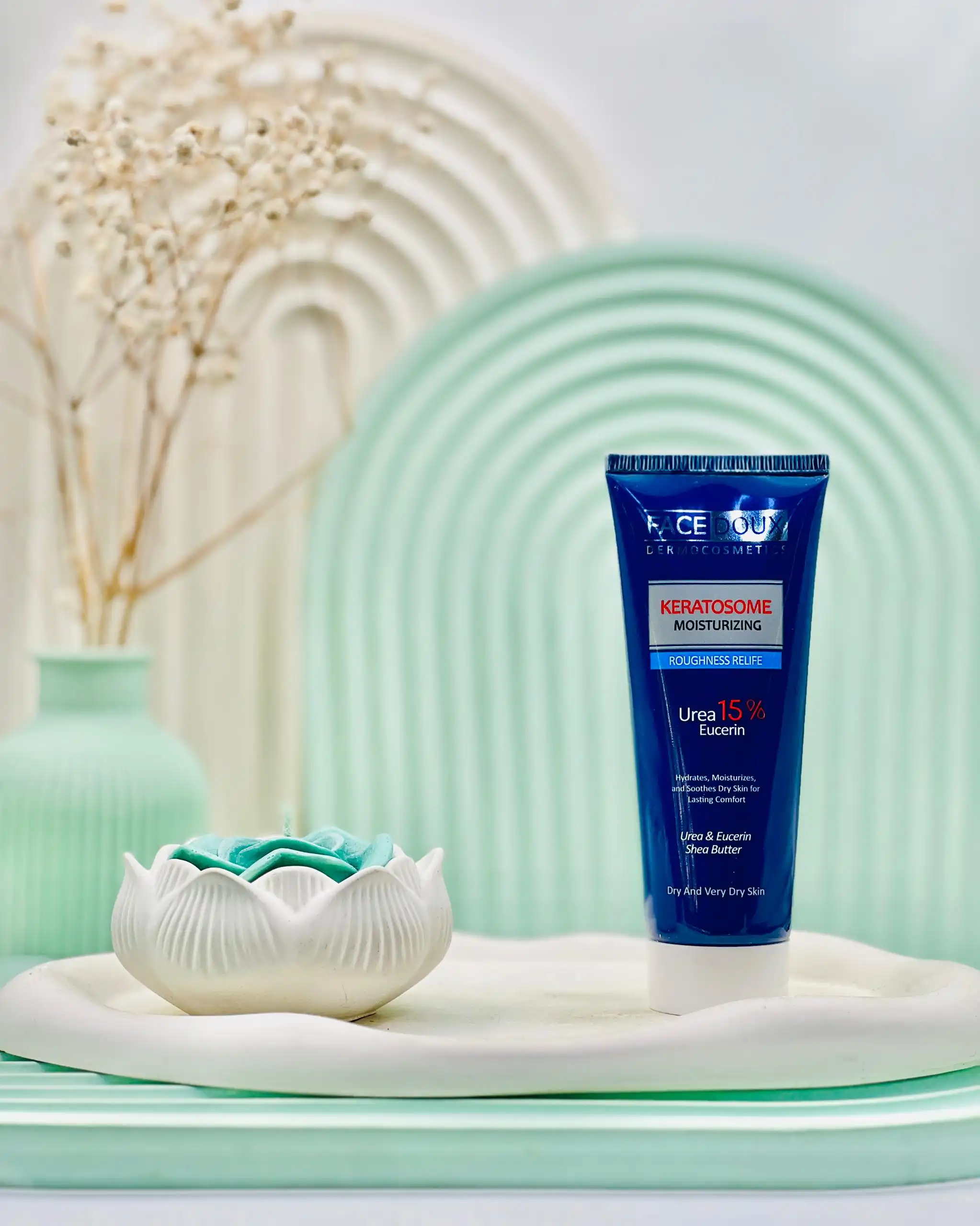 کرم مرطوب کننده کراتوزوم 15 درصد فیس دوکس حاوی 15 درصد اوره بوده که به همراه اوسرین به نرم کنندگی پوست و رفع زبری آن کمک می کند. پوست هاس خشک و حساس نیازمند روتین خاص و موثر پوستی هستند. این افراد با بی توجهی به خشکی پوستشان به مرور پیشرفت دهیدراته بودن پوست را مشاهده می کنند و زبری و پوسته شدن آن آسیب بزرگی بر سلامت پوست وارد می کند. کرم های حاوی اوره و اوسرین گزینه بسیار مناسبی برای رفع خشکی و زبری آن است که به واسطه مرطوب کنندگی موثر خود به بهبود سلامت پوستی کمک می کند. برای خرید کرم مرطوب کننده و کسب اطلاعات بیشتر نسبت به این محصول با ما در ادامه مطلب همراه باشید.