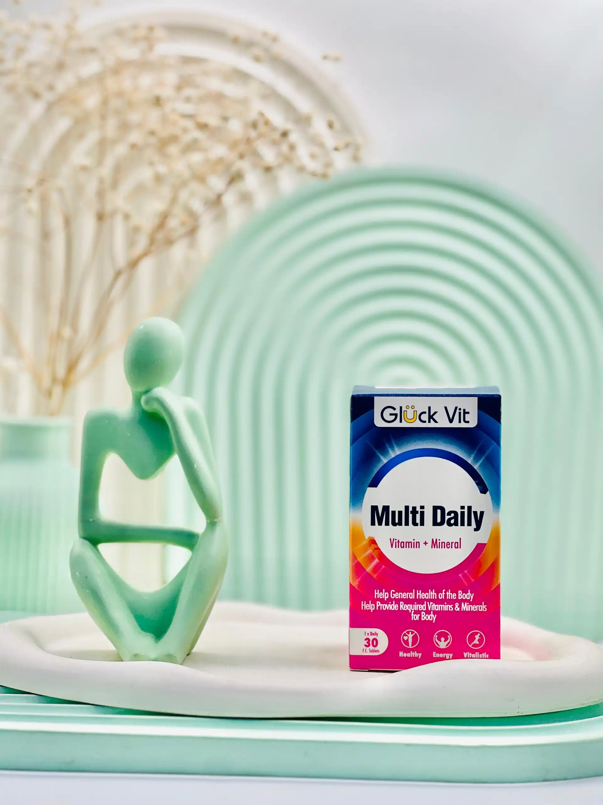 قرص مولتی دیلی گلوک ویت، یک مکمل غذایی چندمنظوره است که بر اساس ترکیبی از مواد معدنی و ویتامین ها طراحی شده است و نیازهای روزانه افراد را برای تقويت ایمنی، بهبود عملکردهای حیاتی و حفظ سلامت عمومی تأمین میکند. همانطور که میدانید امروزه کمبودهای تغذیه ای، افزایش فعالیت های فیزیکی و رژیم های غذایی ناکافی بسیار رایج شده است.
