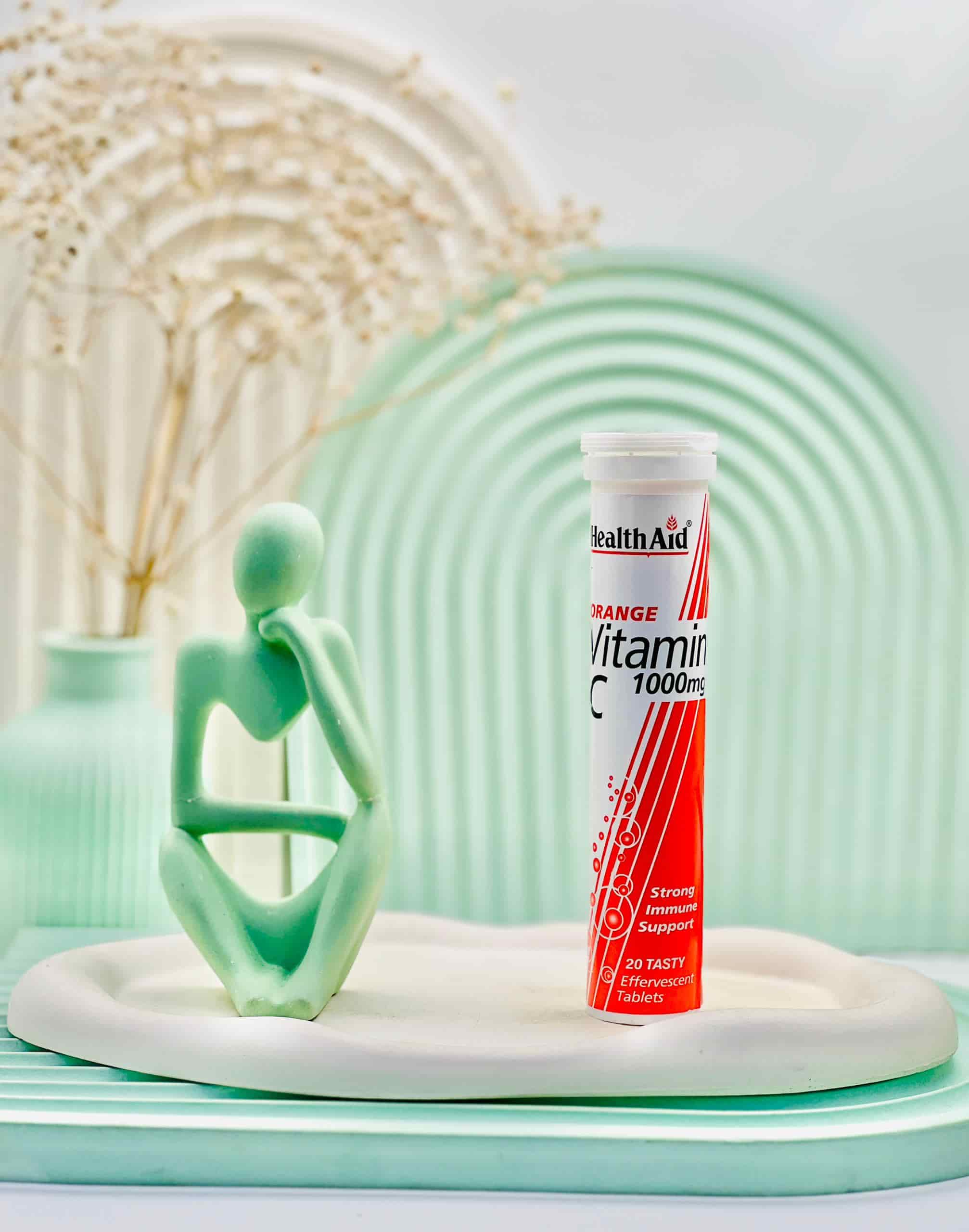 فواید مصرف قرص جوشان ویتامین سی ۱۰۰۰ میلی گرم هلث اید با طعم پرتقال