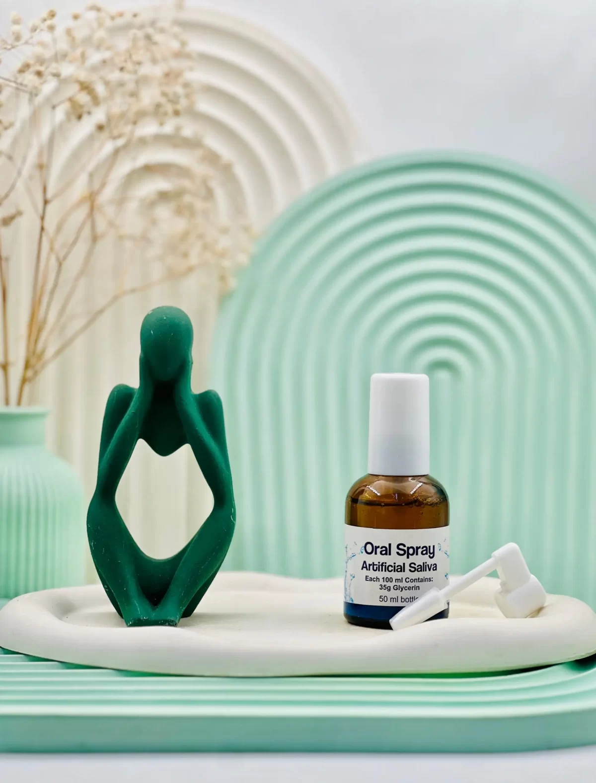 این اسپری دهانی بزاق مصنوعی حاوی 35 درصد گلیسرین می باشد، ماده ی گلیسریت در این محصول باعث تحریک غدد بزاق دهان، مرطوب نگهداشتن دهان، ایجاد جذب کننده آب و نگهدارنده مخاط در دهان می باشد