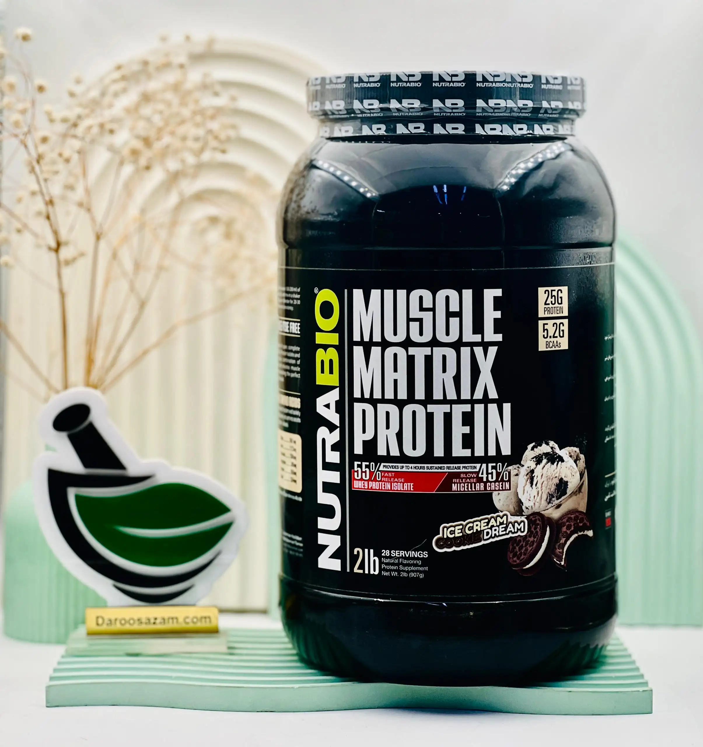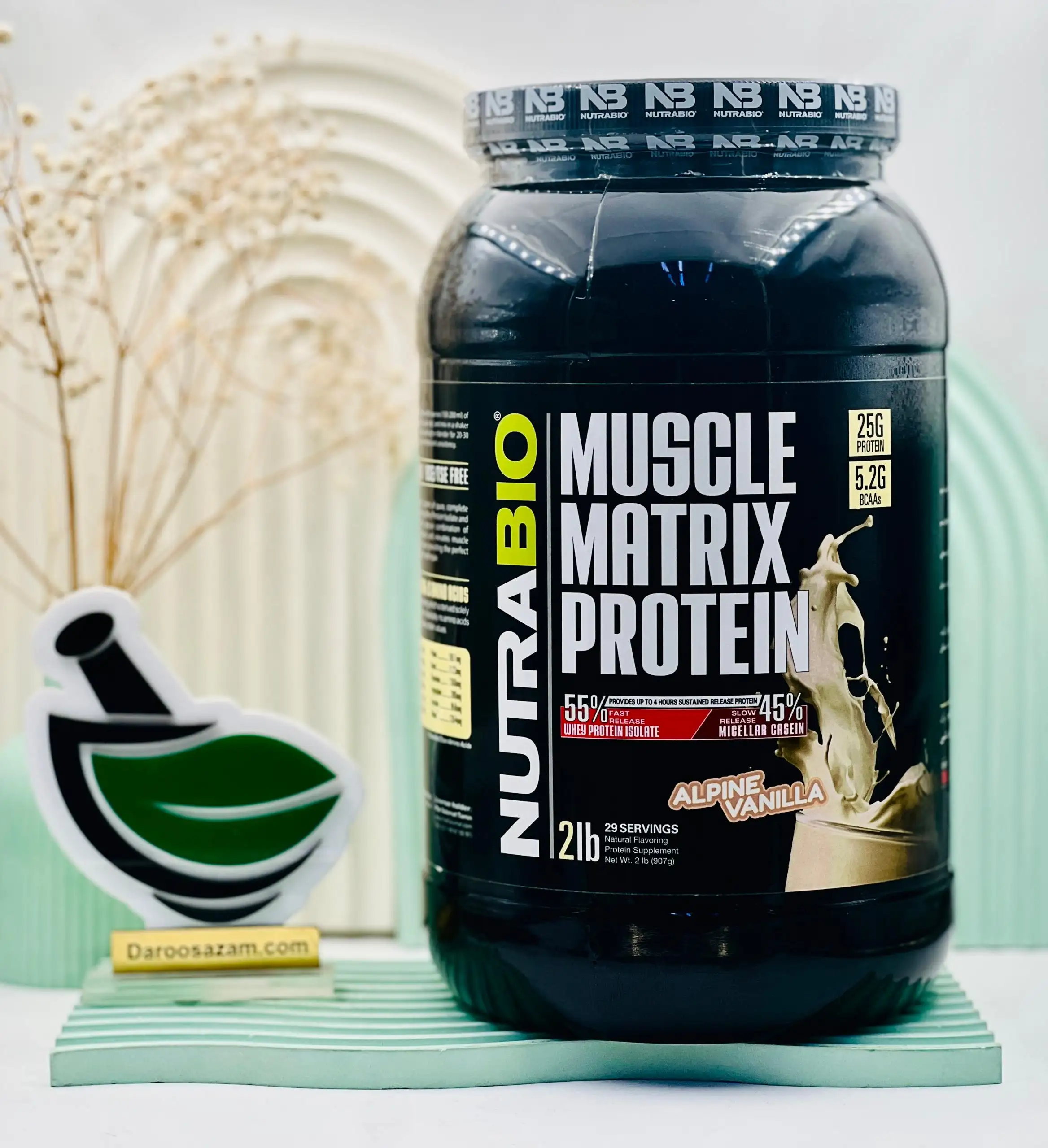 ماسل ماتریکس با دارا بودن پروتئین های بدست آمده از آب پنیر و شیر از بهترین پودر پروتئین های ایزوله برای بهبود عملکرد و افزایش توده عضلانی می باشد. این محصول حاوی پروتئین ایزوله بدست امده از آب پنیر می باشد. از دیگر ترکیبات آن پروتئین بدست آمده از شیر می باشد که به دلیل دیر هضم بودن آن و اثر طولانی مدت خود باعث سیری طولانی مدت و بهبود ریکاوری عضلات حین خواب می باشد.