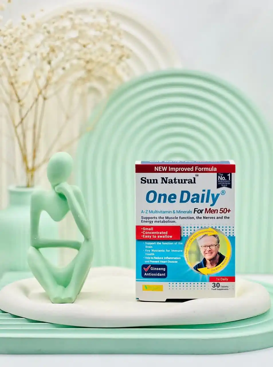 مولتی ویتامین مینرال وان دیلی سان نچرال آقایان مثبت 50 سال با دارا بودن ترکیبات و انواعی از ویتامین های ضروری بدن می تواند موجب بهبود عملکرد سیستم های بدن آقایان شده و به تامین انرژی بیشتر برای آن ها در بسیاری از زمینه ها و فعالیت های روزانه شود. این مکمل موجب تقویت قوای جنسی شده و به باروری بهتر کمک کند. با افزایش سن که بدن توانایی خود را در انجام امور از دست می دهد، جذب و استفاده از مواد مغذی و انجام متابولیسم های ضروری بدن دچار اختلال می شود پس باید به دنبال راه چاره برای این کمبود باشیم که مصرف این مکمل برای آقایان بهترین گزینه برای جبران این مشکل می باشد.