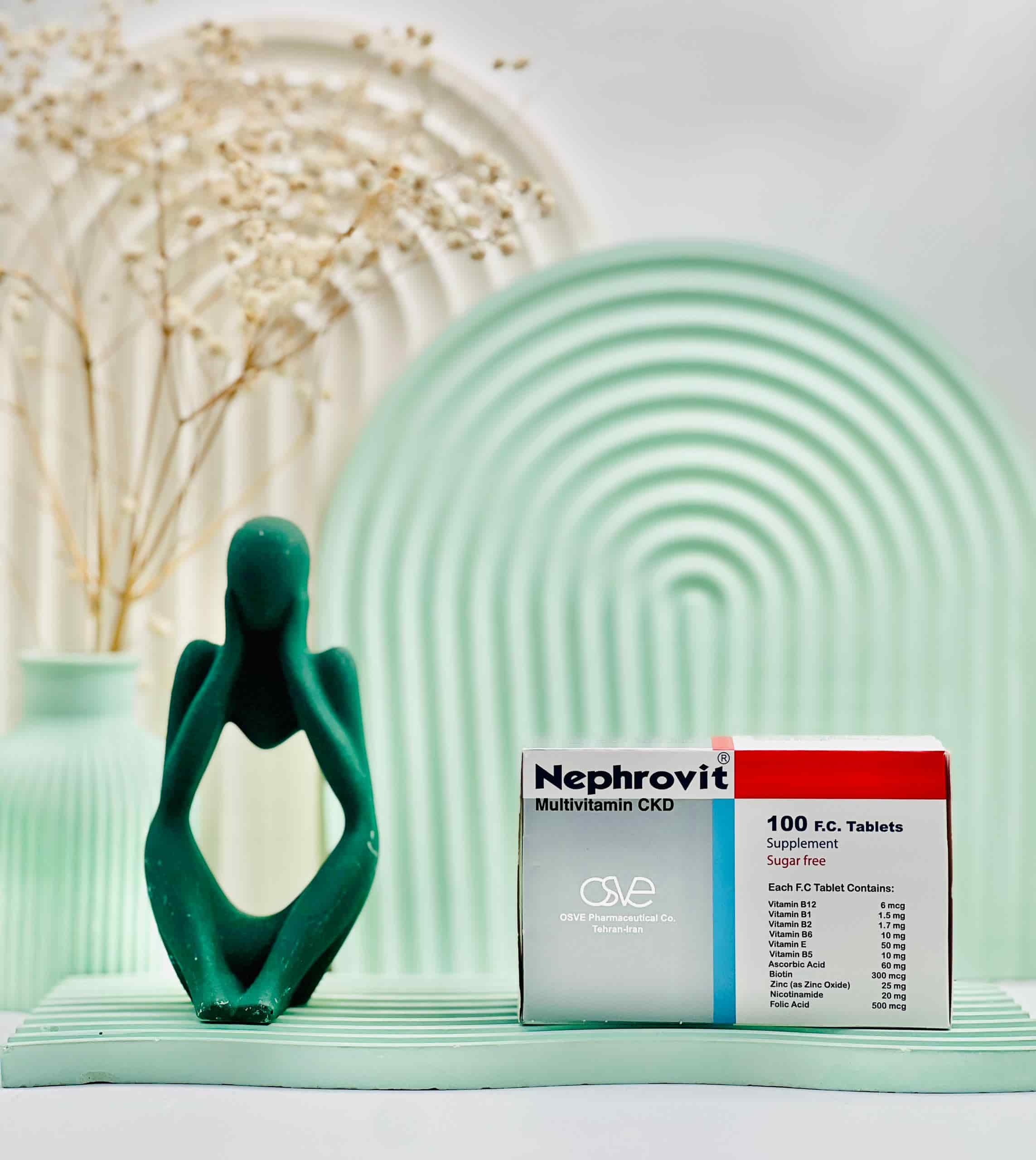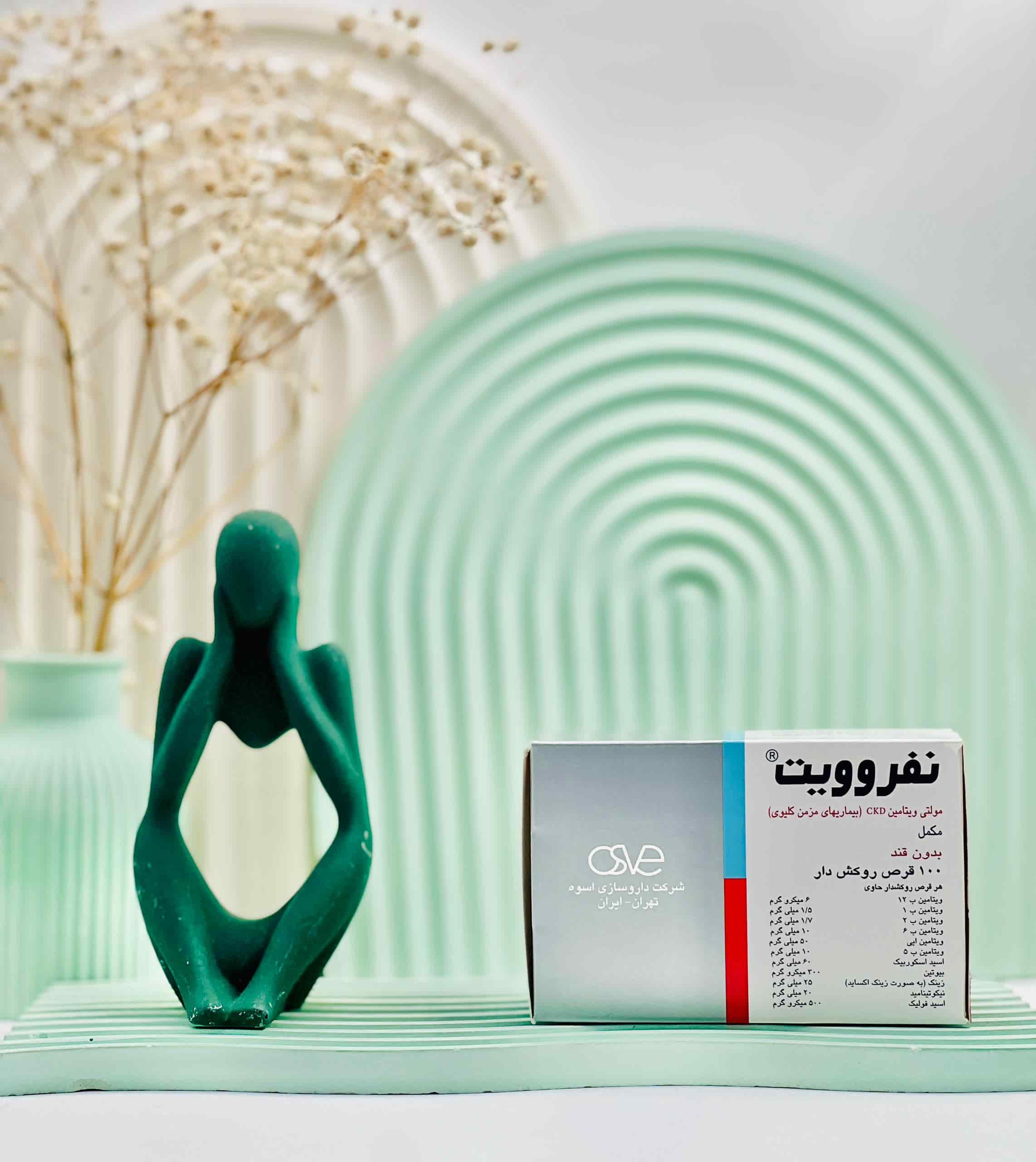 قرص نفروویت اسوه، یک مولتی ویتامین تخصصی برای افراد مبتلا به بیماریهای مزمن کلیوی است. این قرص تامین کننده ویتامینهای گروه B و C در افراد دیالیزی است و فاقد قند و ویتامینهای گروه A میباشد.
