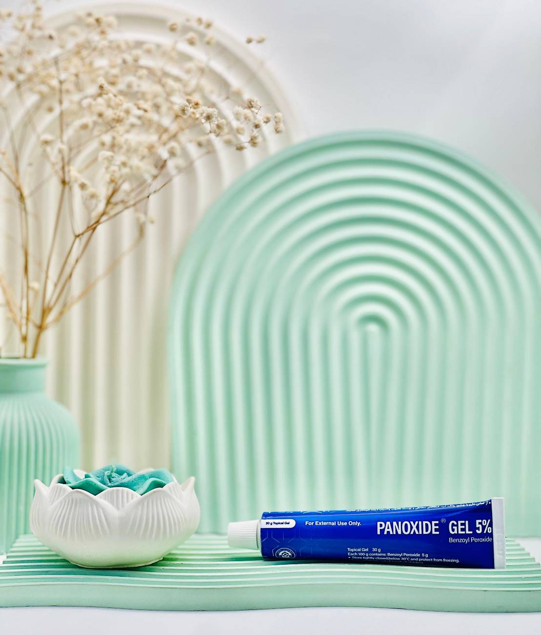 همچنین با آزادسازی آهسته اکسیژن فعال باعث ایجاد یک اثر کراتولیتیک میشود، که اثربخشی محصول را افزایش داده و خیلی سریع جذب پوست شده و به اسید بنزوئیک متابولیزه تبدیل میشود، پس از آن موجب بهبودی ضایعات غیر التهابی و التهابی میشود. در آخر 5% به طور سیستمیک جذب شده و مابقی از طریق ادرار دفع میشود. توجه داشته باشید که بهتر است از ژل پنوکساید در غلظت های پایین تر استفاده کنید تا پوست به تدریج آن عادت کند. درصد غلظت های این کرم متفاوت بوده، به عنوان مثال: 2.5 % ، 5% و 10%