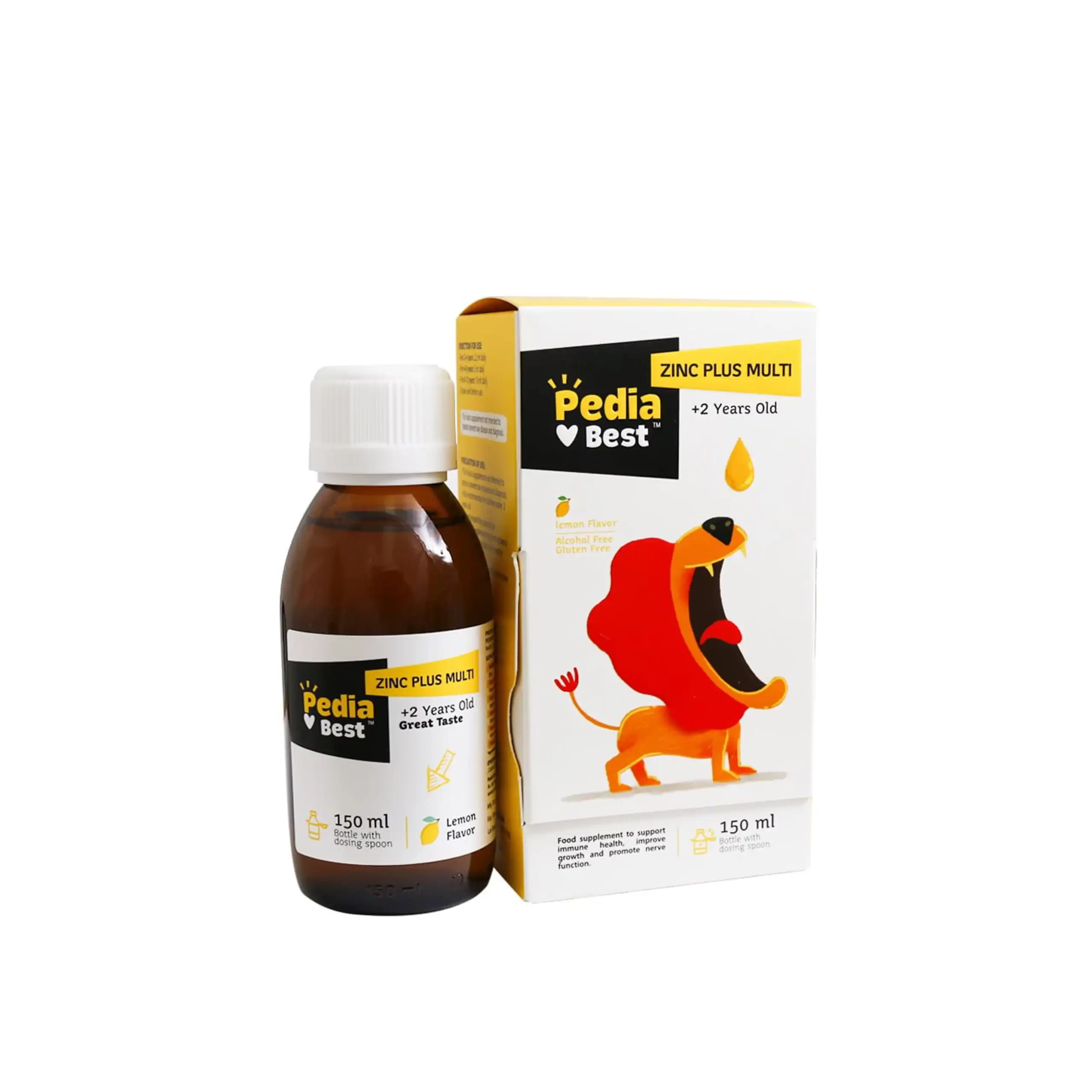 شربت زینک پلاس با طعم خوشایند و دلپذیر لیمو توسط شرکت داروسازی الحاوی در بطری های شیشه ای ۱۵۰ میلی لیتر تولید شده و تحت لیسانس پدوریفمپ پرتغال است. نکته حائز اهمیت این محصول فاقد الکل و گلوتن بودن آن است و کودکان حساس به الکل و مبتلا به سلیاک میتوانند از این شربت استفاده کنند. به منظور خرید مکمل تقویت سیستم ایمنی کودکان و کسب اطلاعات بیشتر نسبت به این محصول با ما در ادامه مطلب همراه باشید.