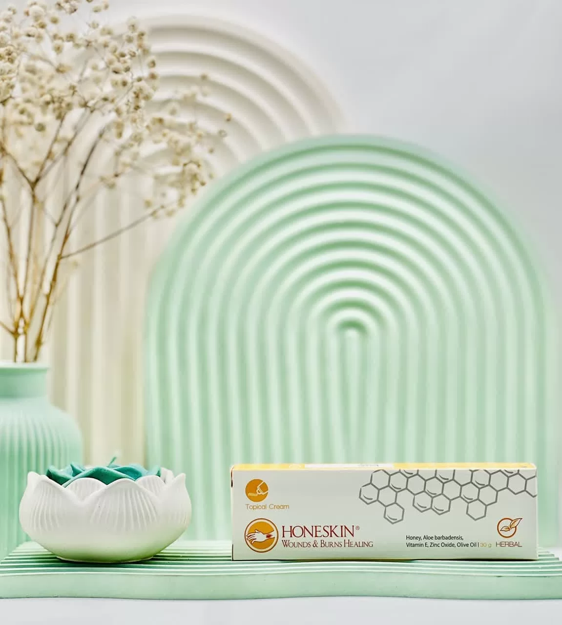 | ترکیبات مؤثر | زینک اکساید، عصاره آلوئهورا، روغن زیتون، ویتامین E، عسل |