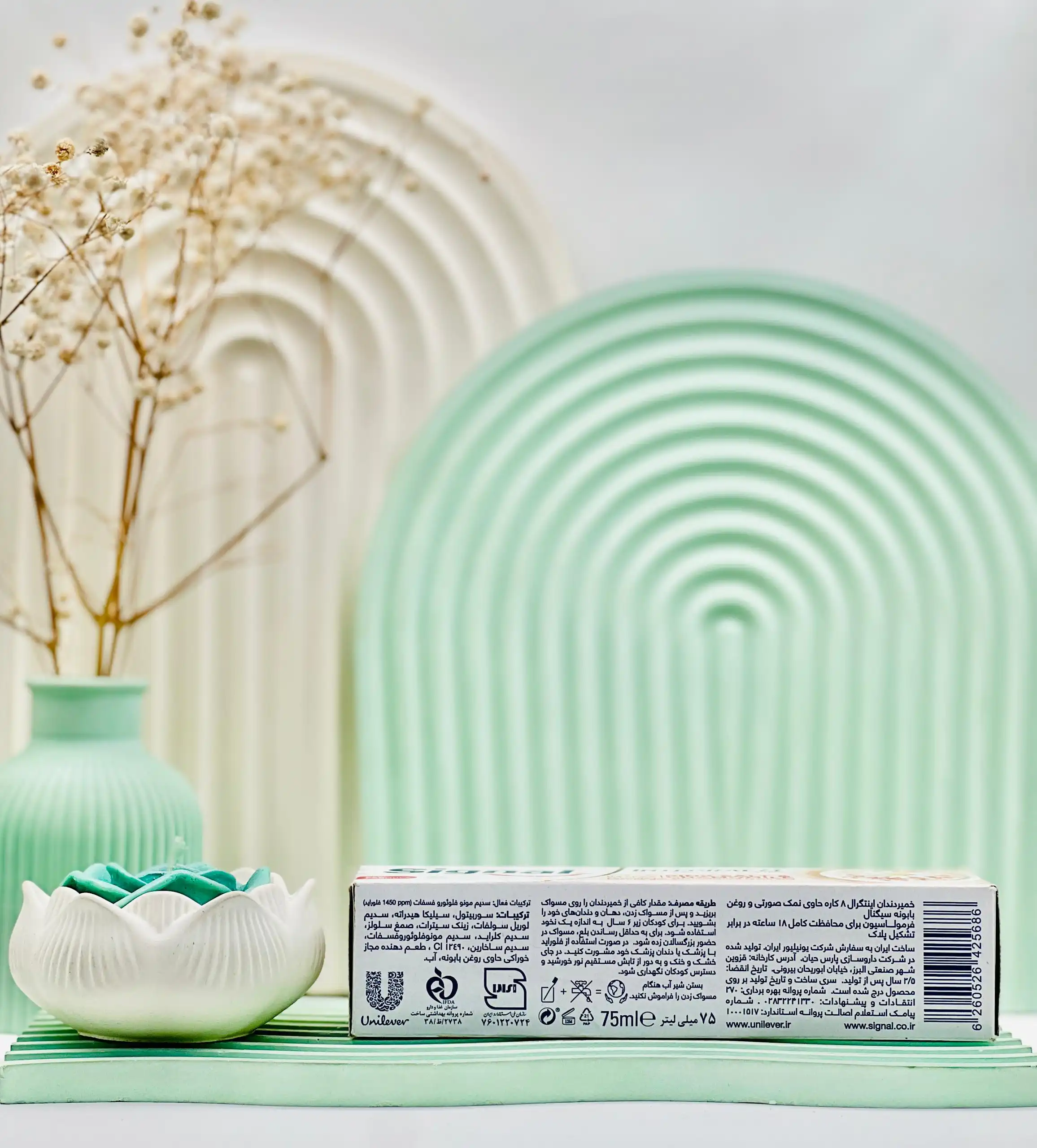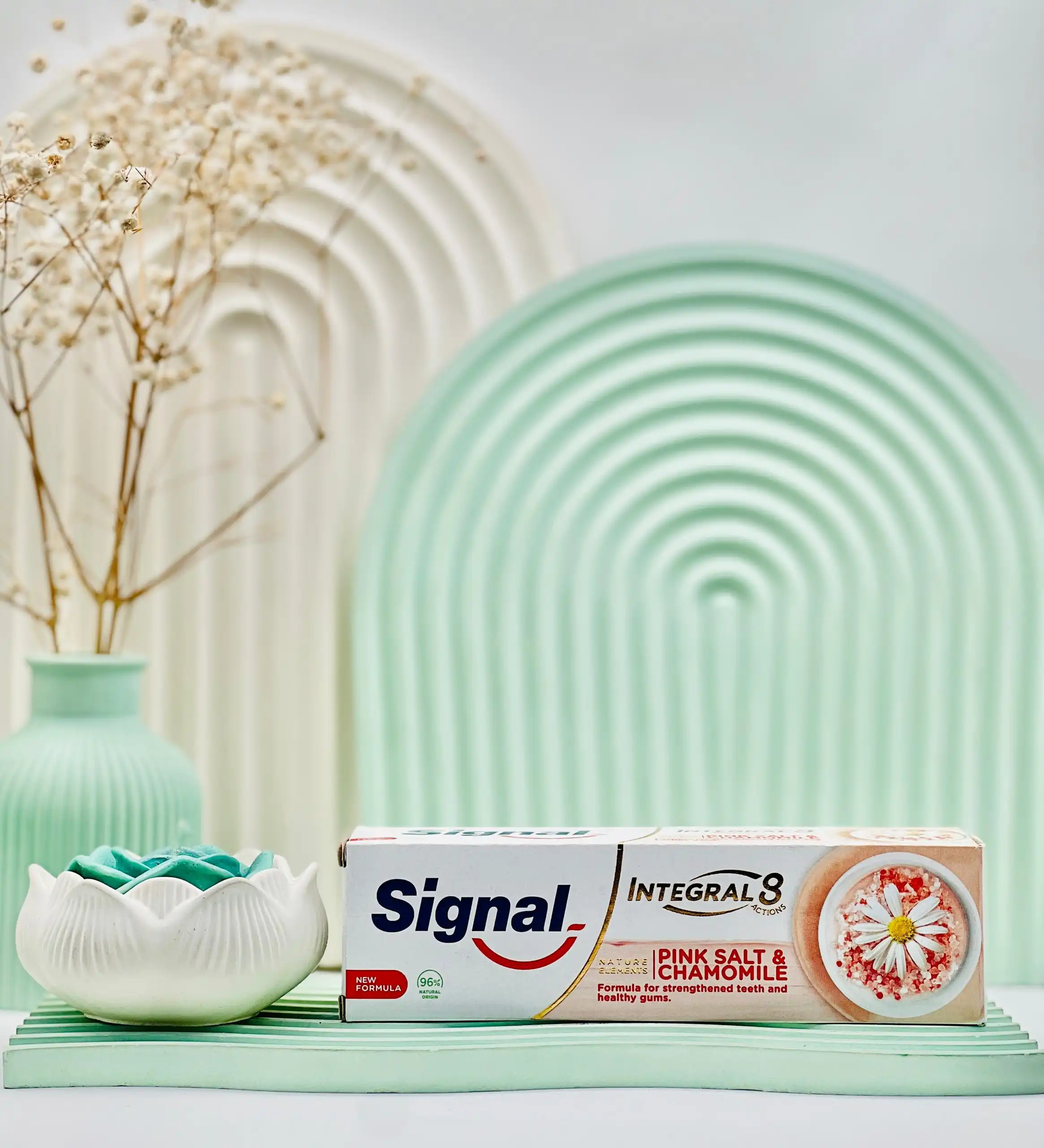 شیوه مصرف خمیر دندان اینتگرال 8 کاره نمک صورتی و روغن بابونه سیگنال