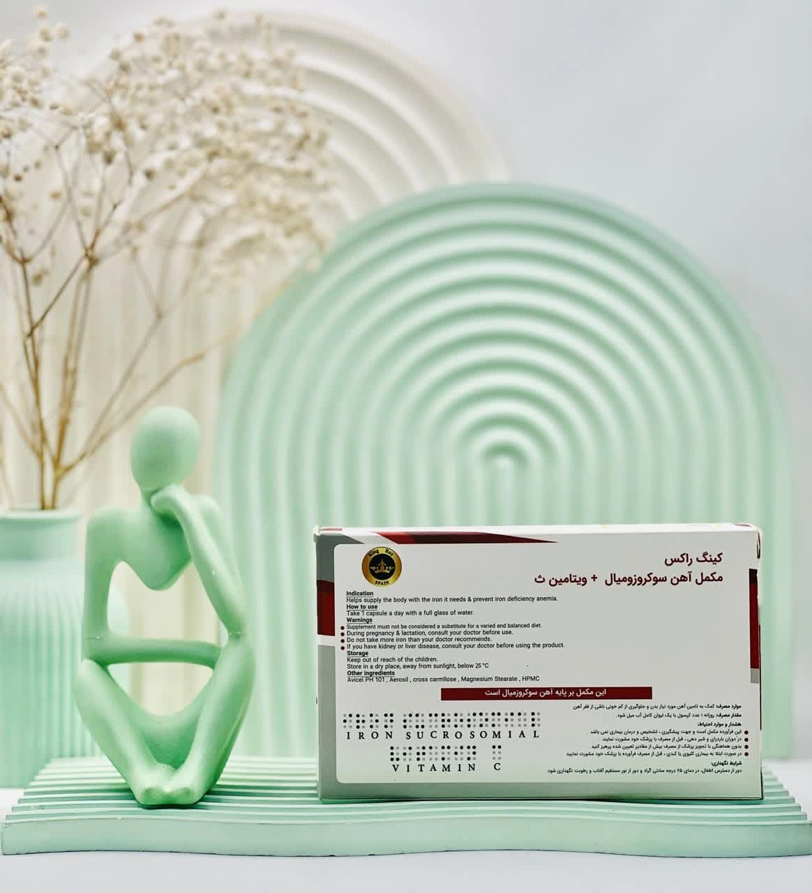 فواید و ترکیبات کپسول آهن سوکروزومیال و ویتامین سی کینگ راکس اسپین