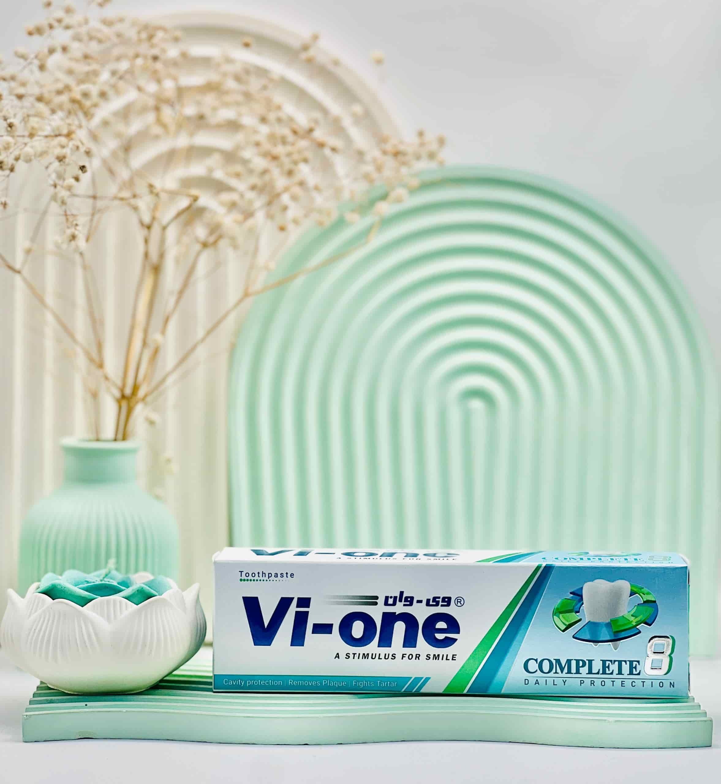 در جوامع امروزی تمامی مردم برای تمیزی و سلامت دندان های خود از خمیر دندان استفاده می کنند. افراد زیادی برای سفیدی و پیشگیری از پوسیدگی دندان های خود از دو نوع خمیردندان با هم استفاده می کنند که تهیه این دو خمیر دندان هزینه بسیار زیادی را برای مصرف کنندگان به همراه دارد اما وی وان با طراحی خمیر دندان 8 کاره کامل دیلی پروتکشن باعث شده است که این مشکل برای افراد حل شود. خمیر دندان 8 کاره کامل دیلی پروتکشن وی وان یک محصول منحصر به فرد برای حفظ سلامت و سفید شدن دندان های شما می باشد و با داشتن ترکیبات فوق العاده باعث درخشش و زیبایی دندان ها می شود.