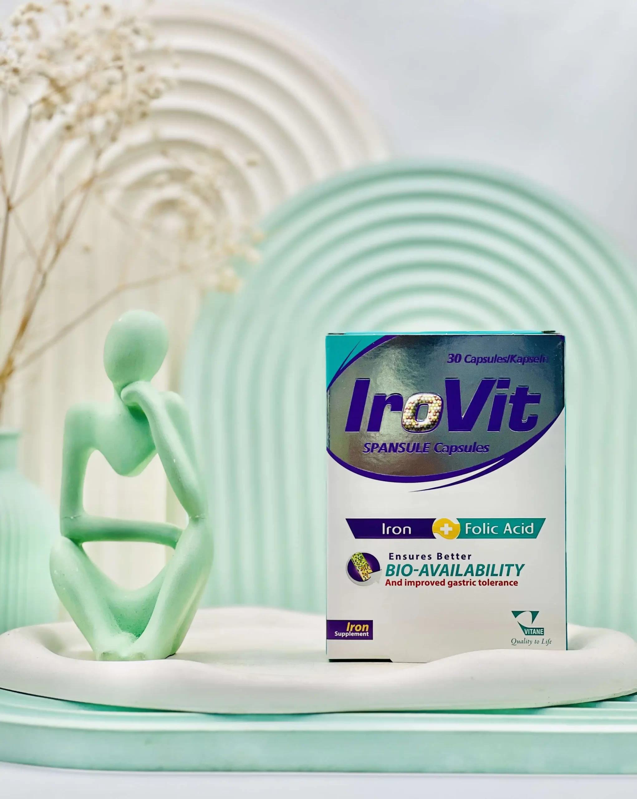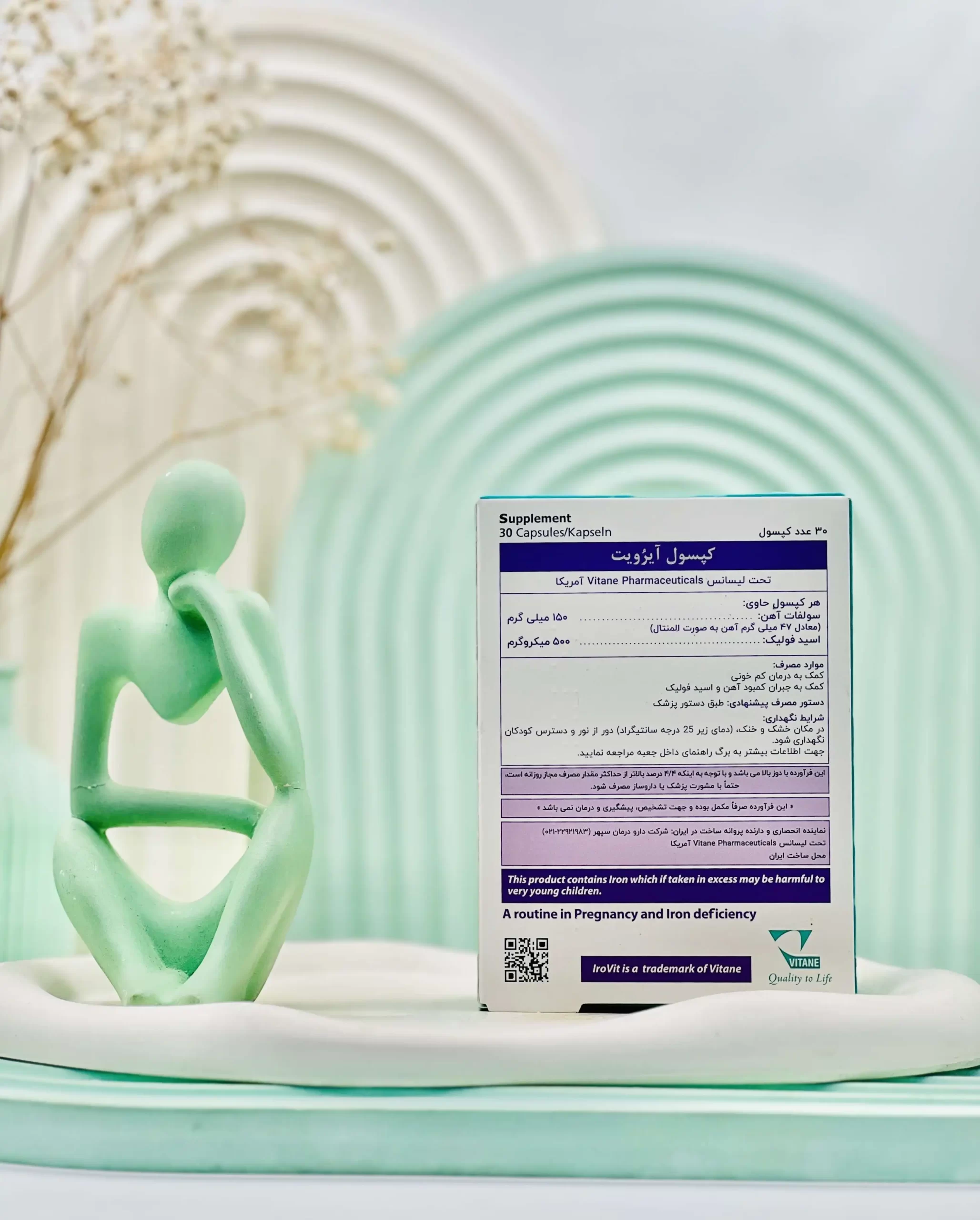 کپسول آیرویت ویتان یک محصولی تخصصی و موثر تحت لیسانس کشور آمریکا می باشد. این محصول با دارا بودن مقدار قابل توجهی از آهن و فولیک اسید به درمان و بهبود کم خونی کمک می کند. وجود فرم سولفات آهن به جذب سریع تر و بروز کمترین عارضه گوارشی می پردازد. فولیک اسید نیز یکی از مهم ترین مواد برای سنتز سلول های قرمز خونی بوده که به خون سازی و رفع کمبود این ماده ضروری کمک می کند. کم خونی به ایجاد اختلالات بزرگ در روند سیستم قلبی عروقی پرداخته و باعث کم انرژی بودن طی روز می شود. با ابتلا به کم خونی و مشکلات ناشی از آن به مرور، تغذیه رسانی و اکسیژن رسانی بافتی کاهش می یابد. مصرف این محصول با توجه به دوز بالای آهن تنها با مشورت پزشک پیشنهاد می شود. به منظور خرید قرص آهن و کسب اطلاعات بیشتر نسبت به این محصول با ما در ادامه مطلب همراه باشید.